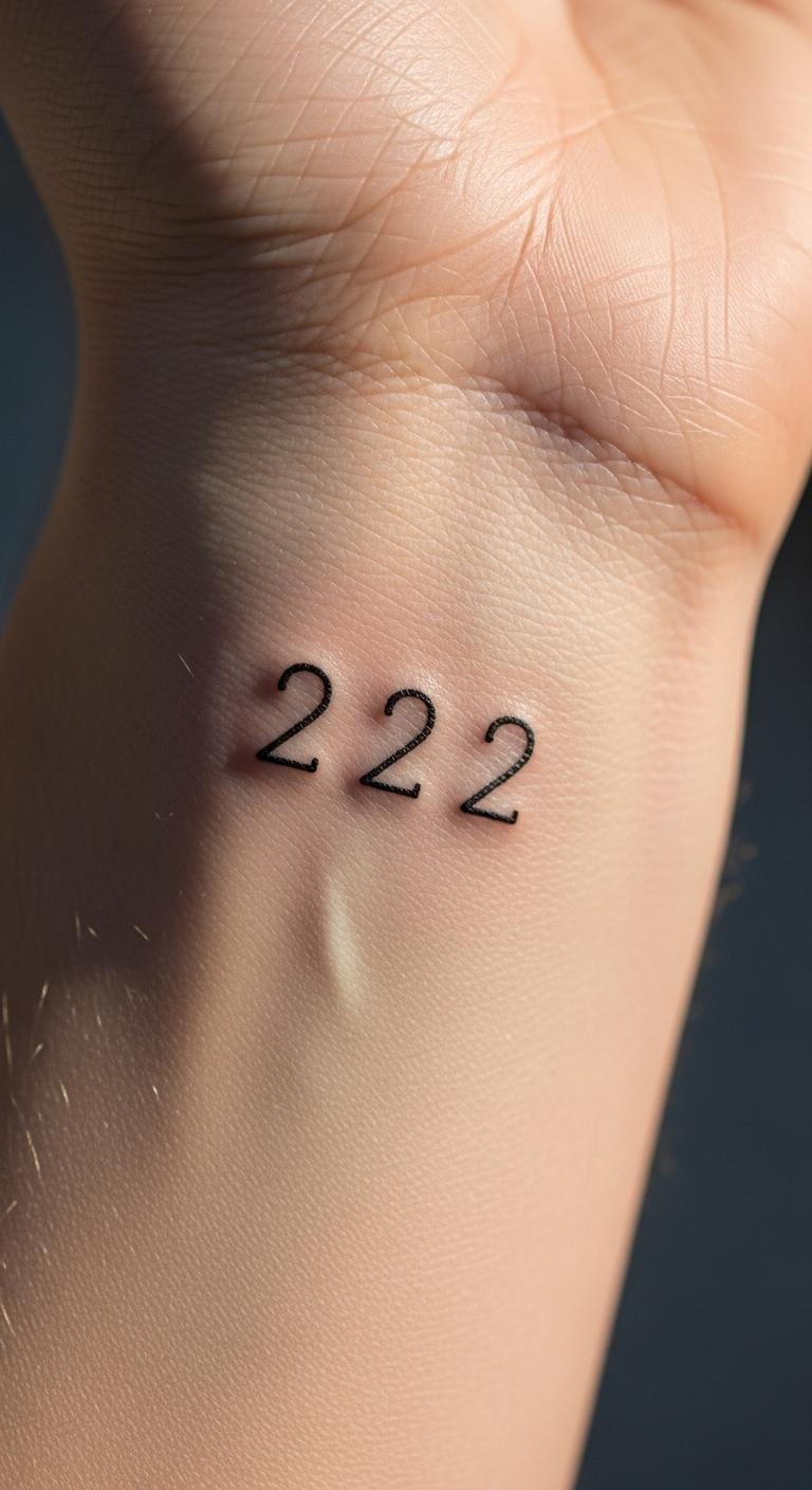 A minimalist 222 wrist tattoo keeps things simple and elegant. This design uses clean lines to show luck and unity. It fits anyone wanting a subtle nod to balance.
