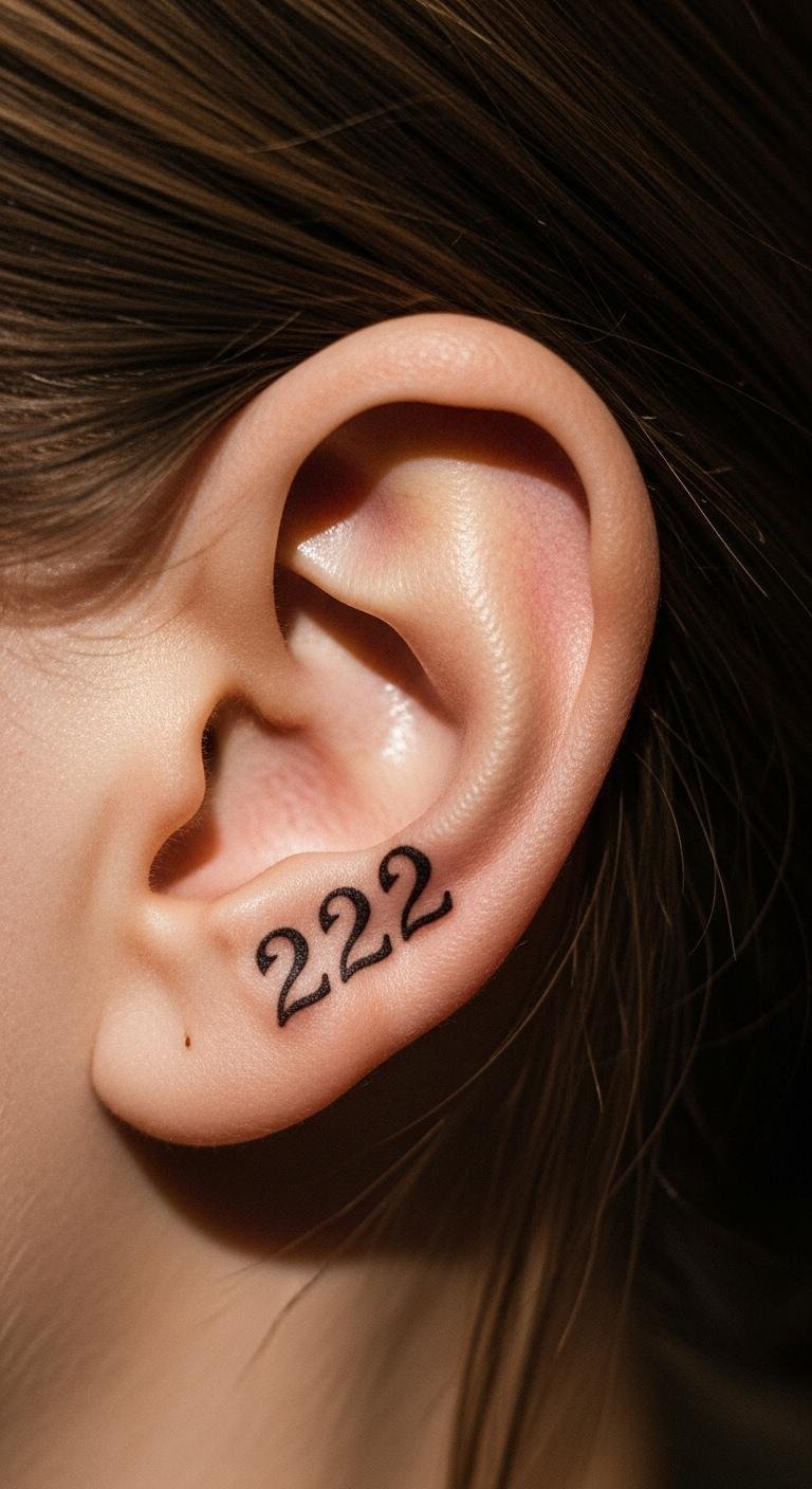 A simple 222 behind ear tattoo whispers luck and unity. It’s hidden yet powerful, like a secret strength.