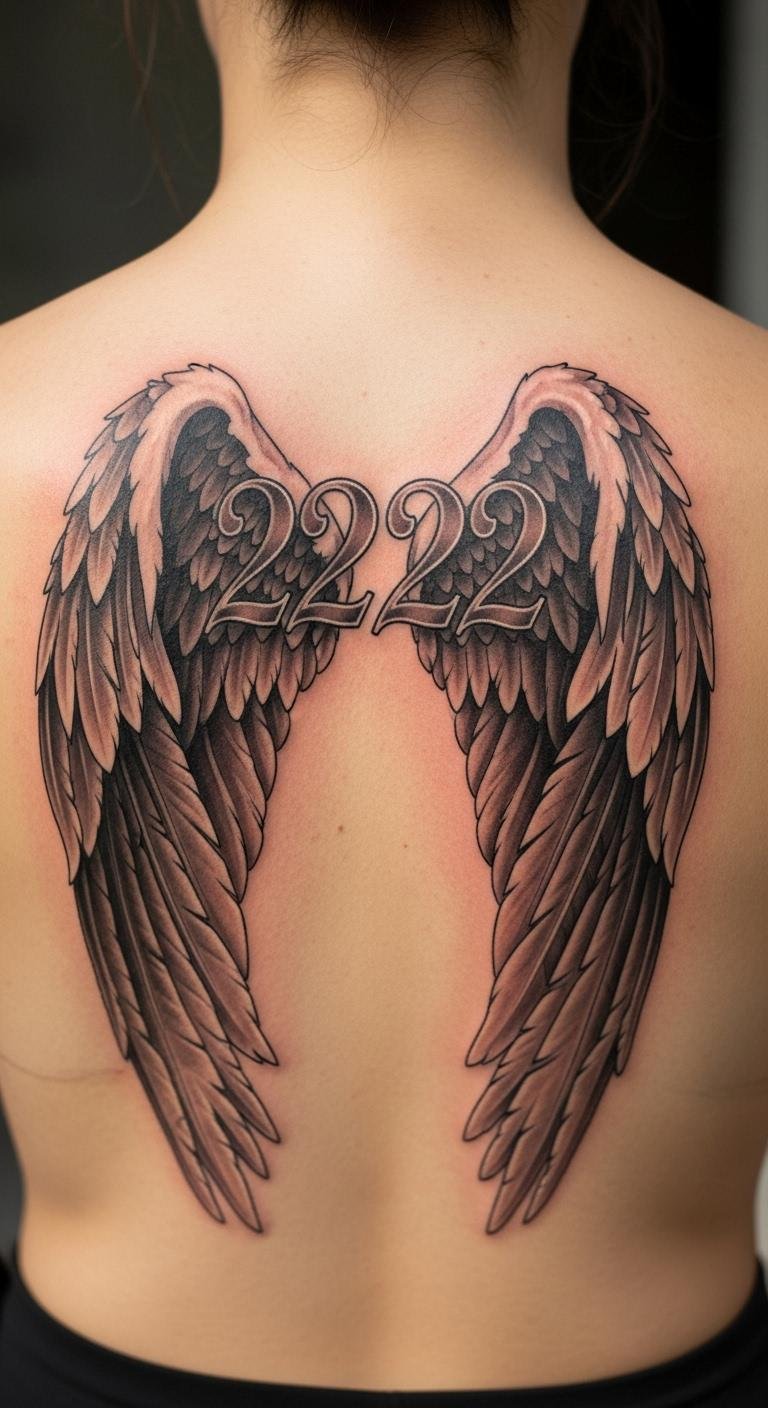A 222 angel wings tattoo symbolizes protection and unity. Wings add a layer of luck, like guardian spirits watching over you. It’s a powerful way to express faith.