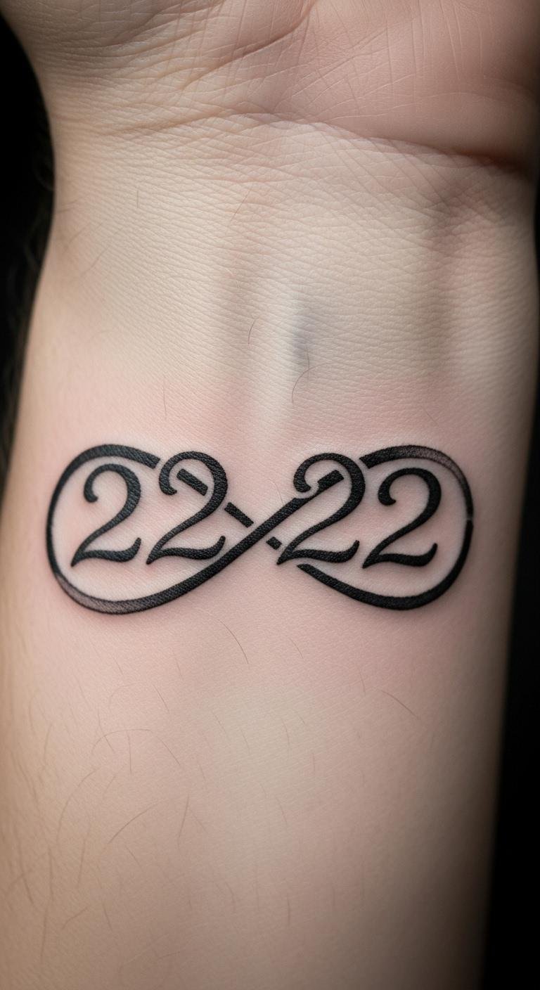 A 222 with infinity symbol tattoo blends endless unity with luck. The loop shows ongoing harmony in life.