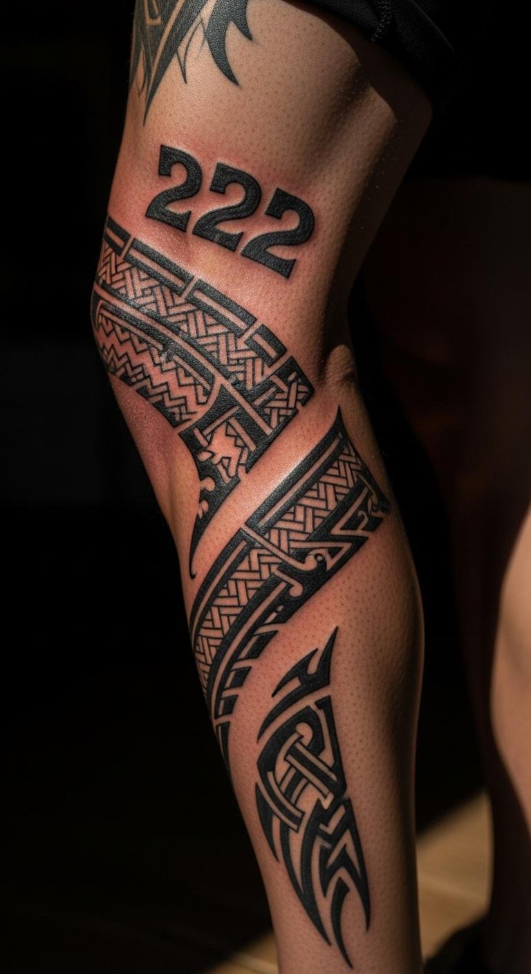 A tribal 222 style tattoo mixes culture with luck and unity. Patterns add depth, creating a tribal feel of community.