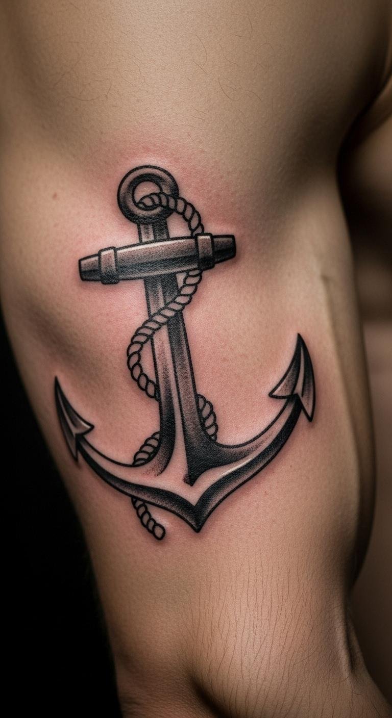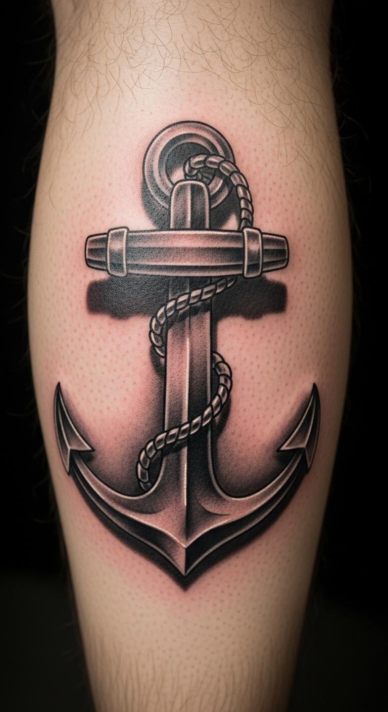 Shaded anchors add depth and dimension to strength. Imagine layers of gray for a 3D effect. Create shades with pencils on paper yourself. Look for shading tutorials online at no charge. Place it on your calf for a dynamic spot. Focus on grays to keep costs down. It represents layered resilience. Test with home drawing tools. Choose a balanced size for value. This style gives your tattoo real pop.