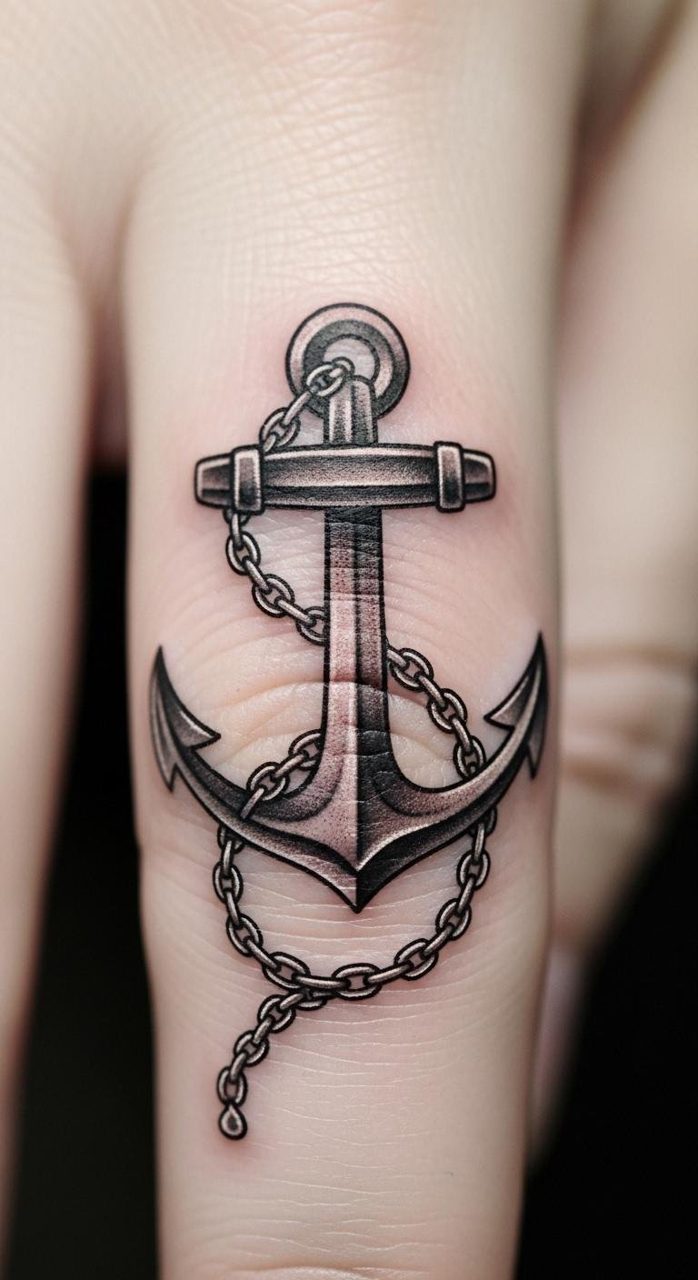 Chain and anchor show linked strength. Imagine a chain hanging from the design. Draw chains at home with string and paper. Get chain ideas from free resources. Try a finger for a ring-like effect. Keep it simple black for savings. This means connected resilience. Practice with household items. Opt for tiny details to fit budgets. It feels like a personal chain of support.