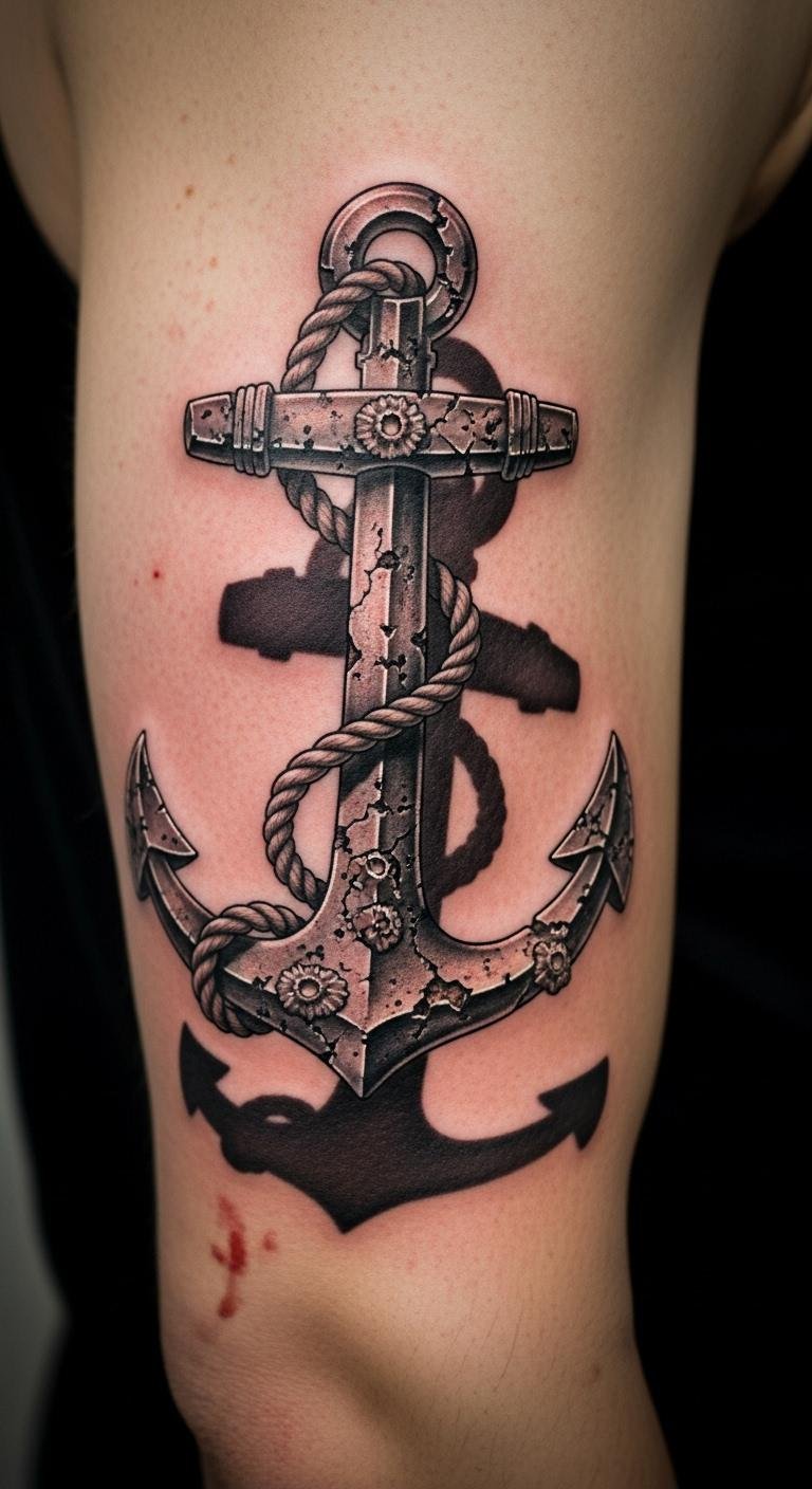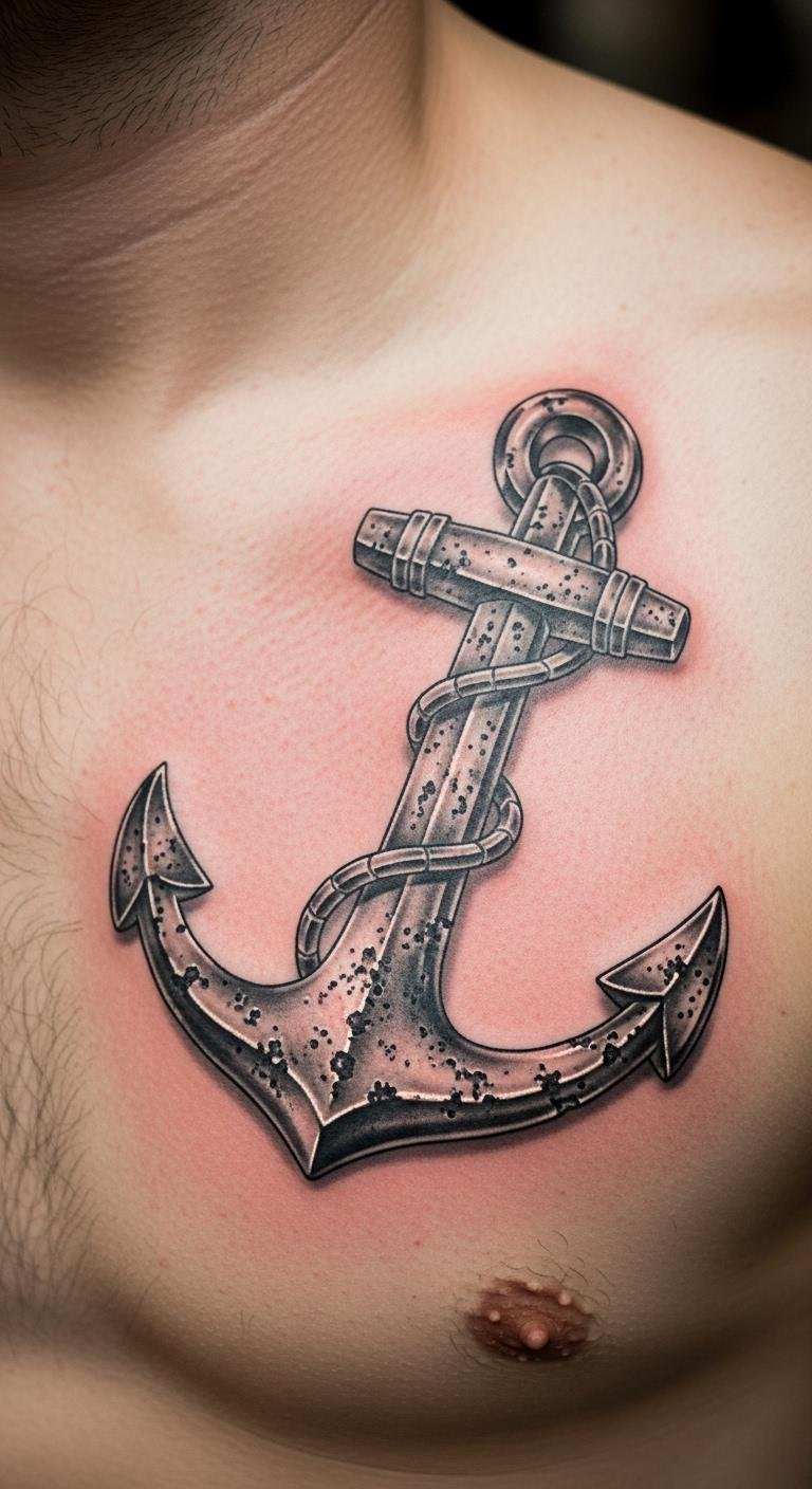 Realistic anchors mimic real metal for true strength. Picture detailed rust and shine. Create a mock with photos and sketches. Find realistic refs online for free. Place on your chest for impact. Use grays and blacks to lower costs. It represents tangible power. Try shading practice at home. Choose a standard size for value. This design brings reality to your skin.