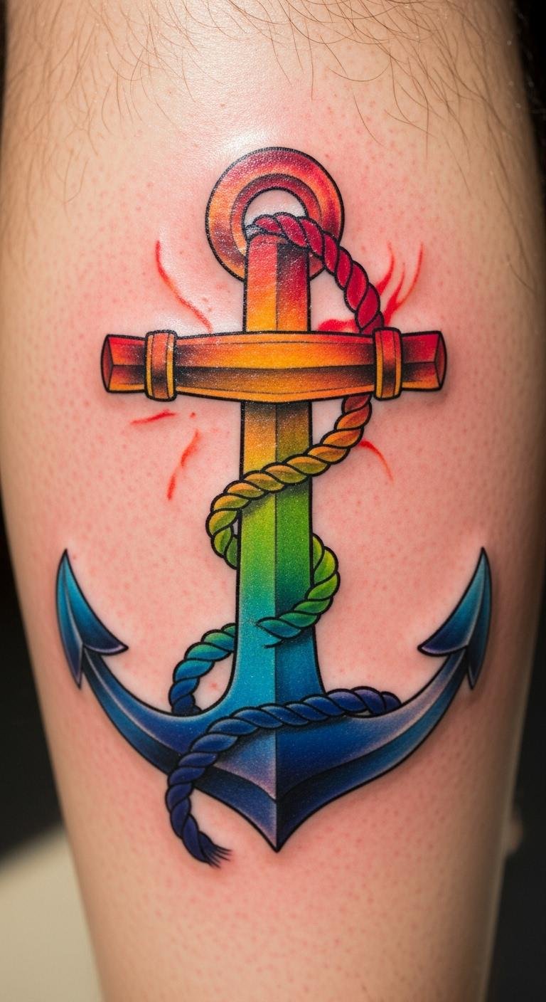 Colorful blends bring fun to anchor strength. Think multiple hues merging smoothly. Mix colors with markers yourself. Find blend ideas on free sites. Place on your leg for expression. Use a few colors to lower fees. It means vibrant resilience. Try blending on paper. Go for a colorful option that’s affordable. This design brightens your story.