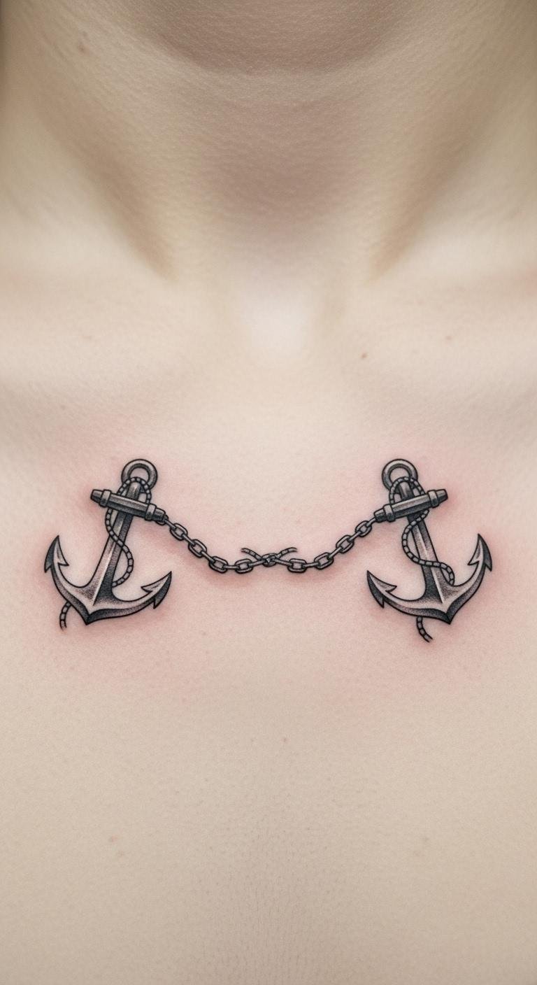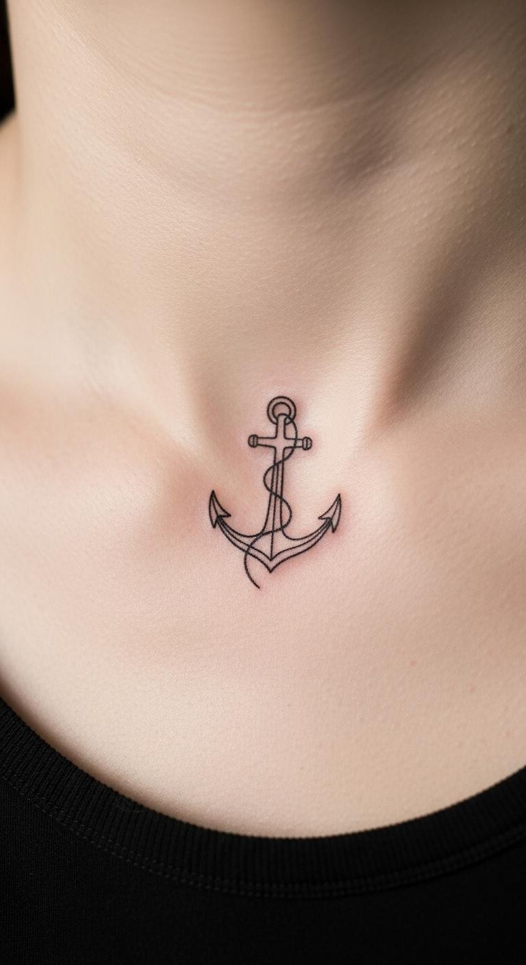 Simple line anchors keep it elegant and strong. Think just a few strokes for impact. Line it out with a pen first. Find line art online without cost. Place on your collarbone for grace. Stick to one color for cheap. It represents pure strength. Use line tools you own. Go simple for affordability. This design is timeless.