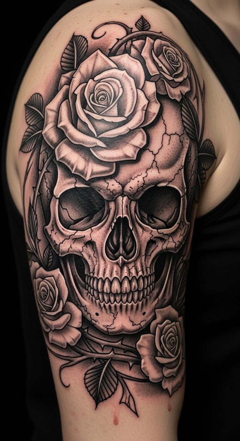Skull and rose tattoos pair life and death artfully. Use shades for contrast. Place on your shoulder. Find fusion artists for $110. Add colors sparingly. Plan with doodles. These designs age with depth. It’s a creative, budget option.
