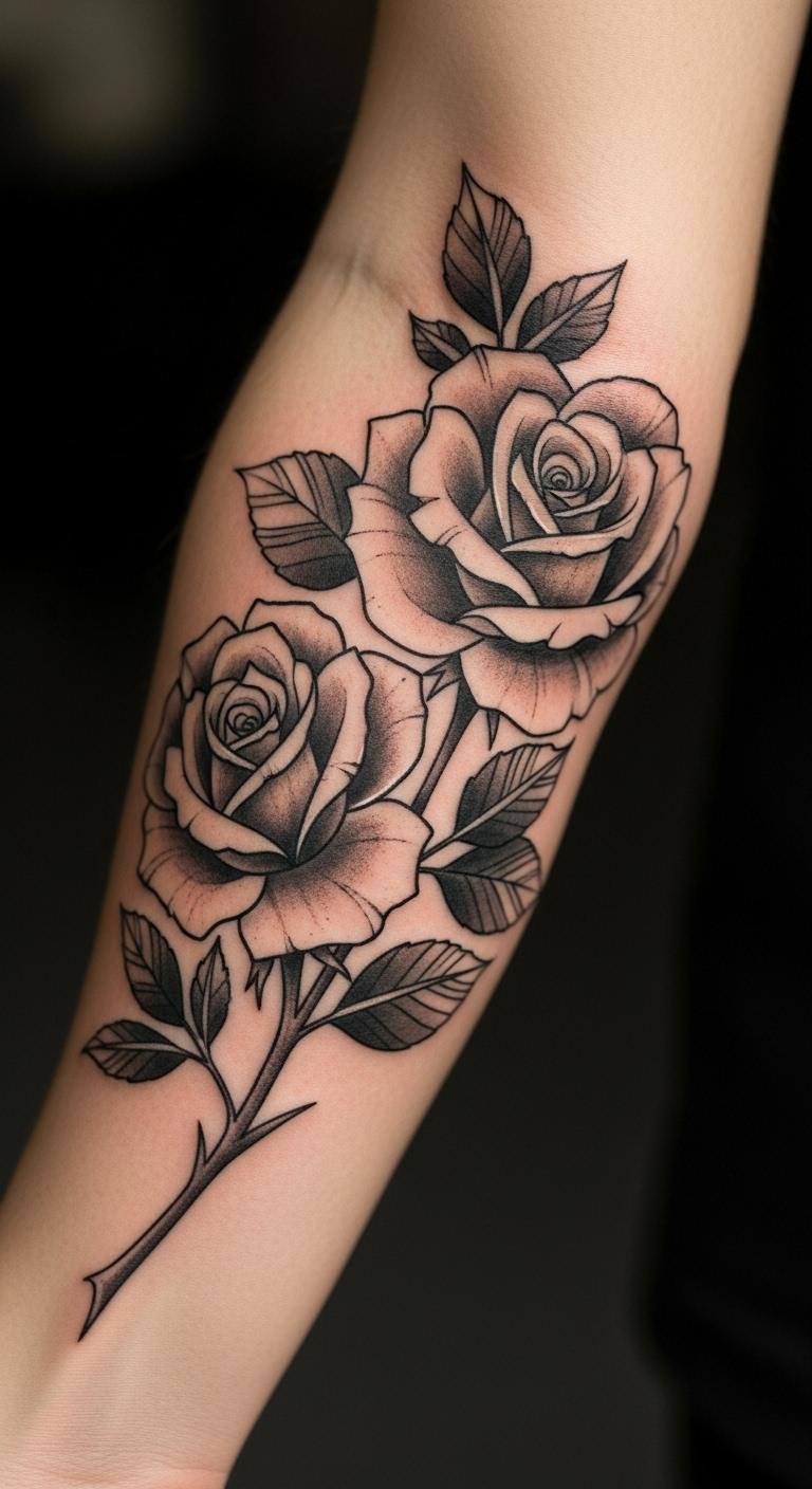 Black and gray flowers like roses add beauty and meaning without bright hues. Focus on shading for a soft, aged effect. Place them on your shoulder for balance. Find deals at local shops—basic florals often cost around $120. Combine with thorns for a personal edge. Draw sample flowers in a notebook to get the flow right. This style stays sharp for years, making it a smart pick. It’s affordable and versatile for any spot.