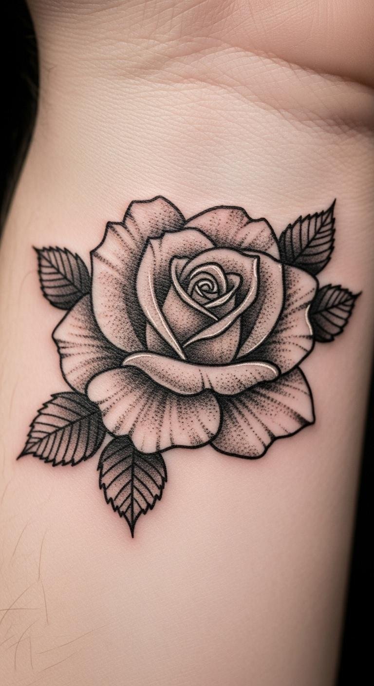 Roses in tattoos mean love and beauty with a nod to the past. Keep shading simple for depth. Put it on your hand for visibility. Look for quick sessions online—around $70. Mix in leaves for a fuller story. Practice drawing roses at home first. These hold color well, blooming over time. It’s a budget option with big impact.