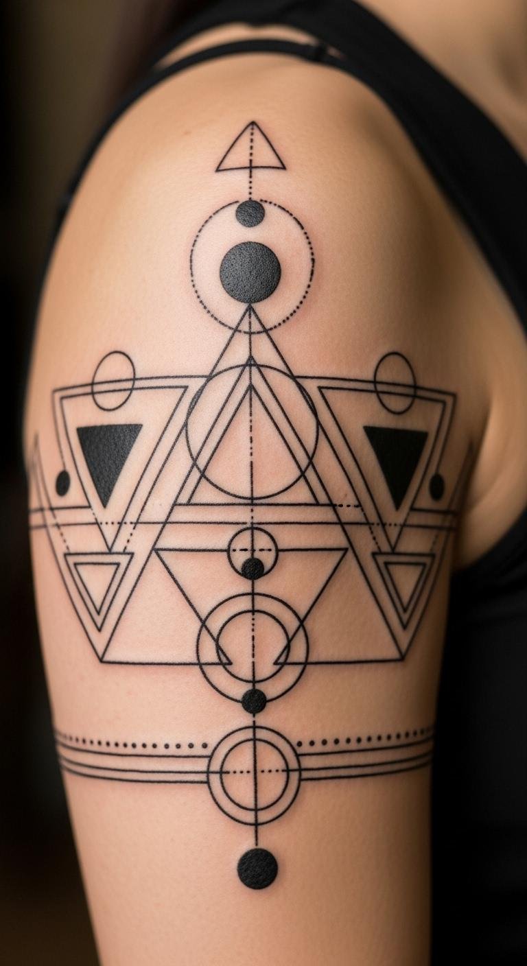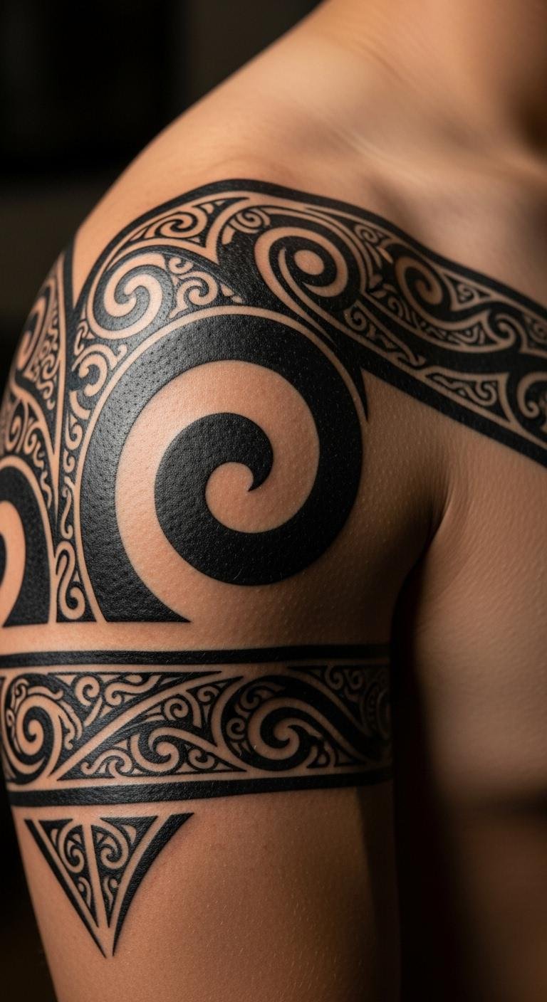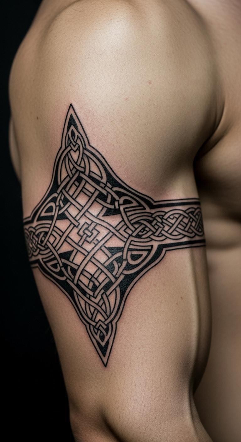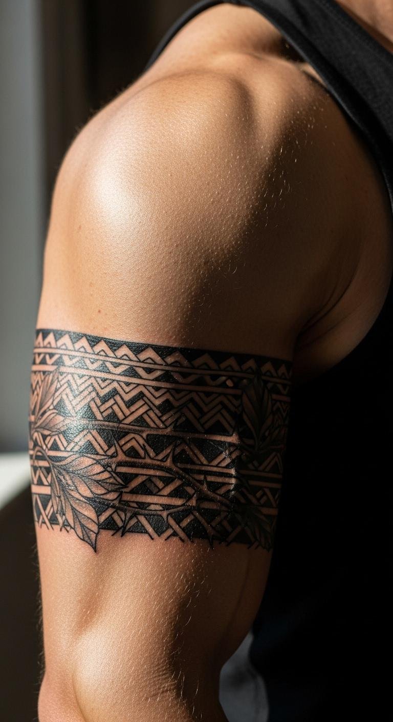 Geometric armbands exude masculinity and courage. They form a striking display.