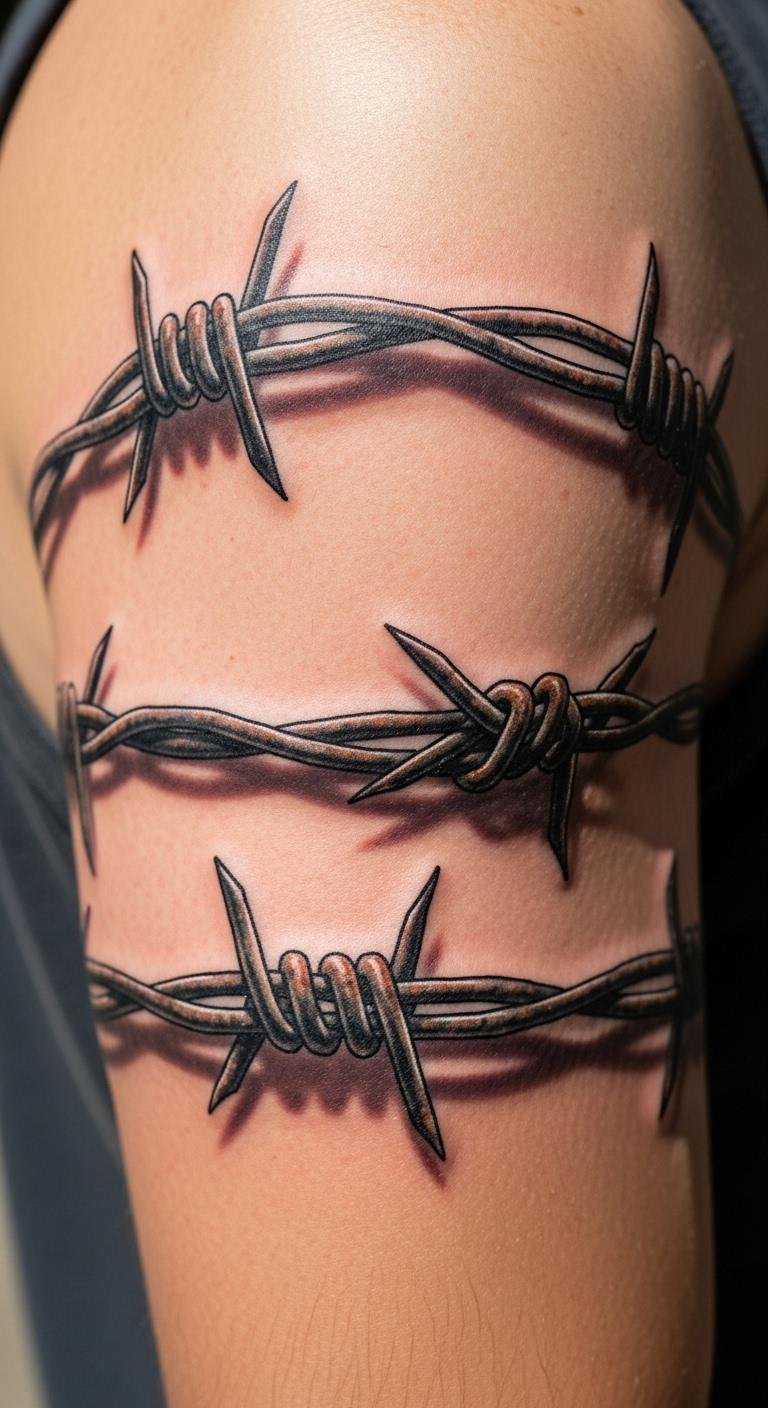Barbed wire tattoos symbolize grit and survival. They show you can handle challenges.