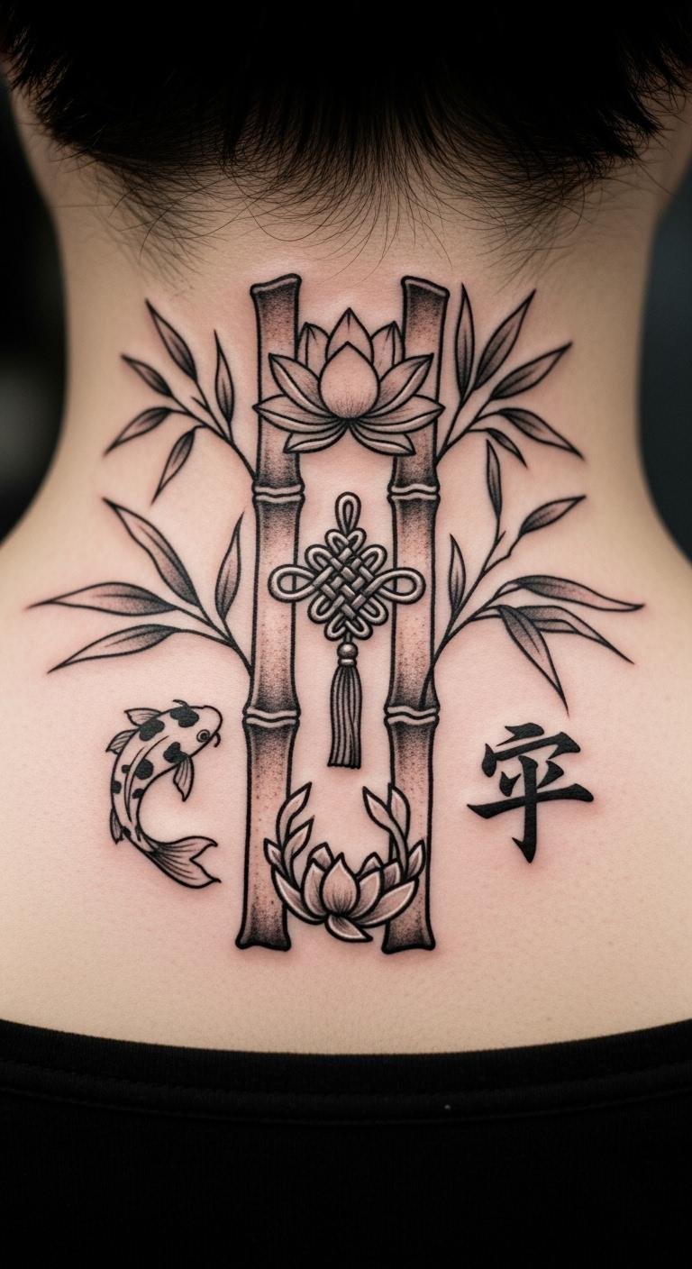Cultural symbols in bamboo honor traditions with added icons. It mixes heritage into one design. Sketch symbols from resources. Look for cultural tattoo offers. For example, include a small icon nearby. This keeps it respectful and budget-friendly. Put it on your neck for prominence. Draw with available tools. Opt for simple additions. Try paper cutouts for ideas.