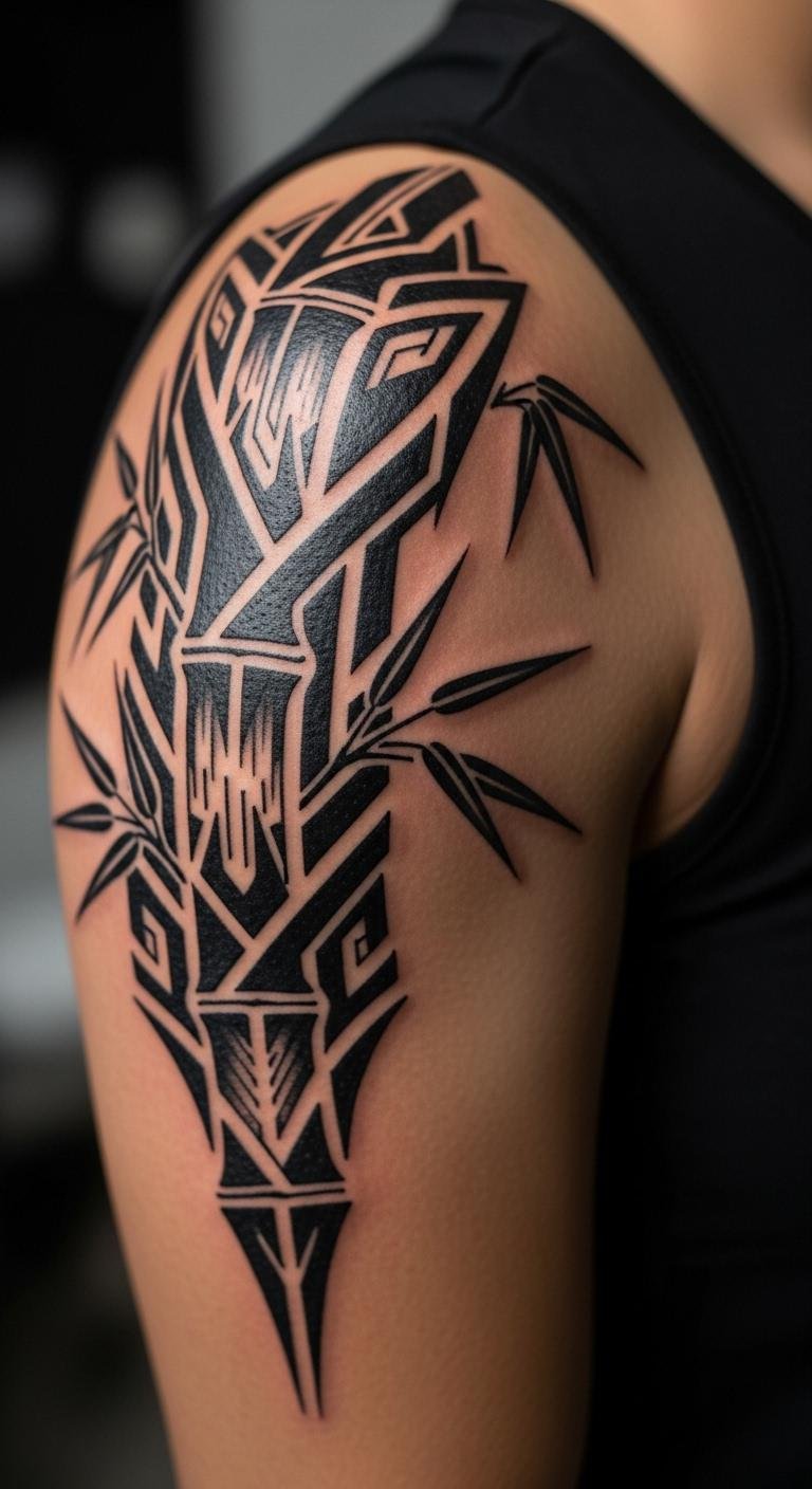 Modern fusion bamboo mixes new shapes for a fresh take. It updates the classic design. Draw fused elements on paper. Look for fusion deals. For instance, add geometric parts. This innovates without expense. Position it on your shoulder. Use digital tools. Opt for mixed styles. Preview with fusions.