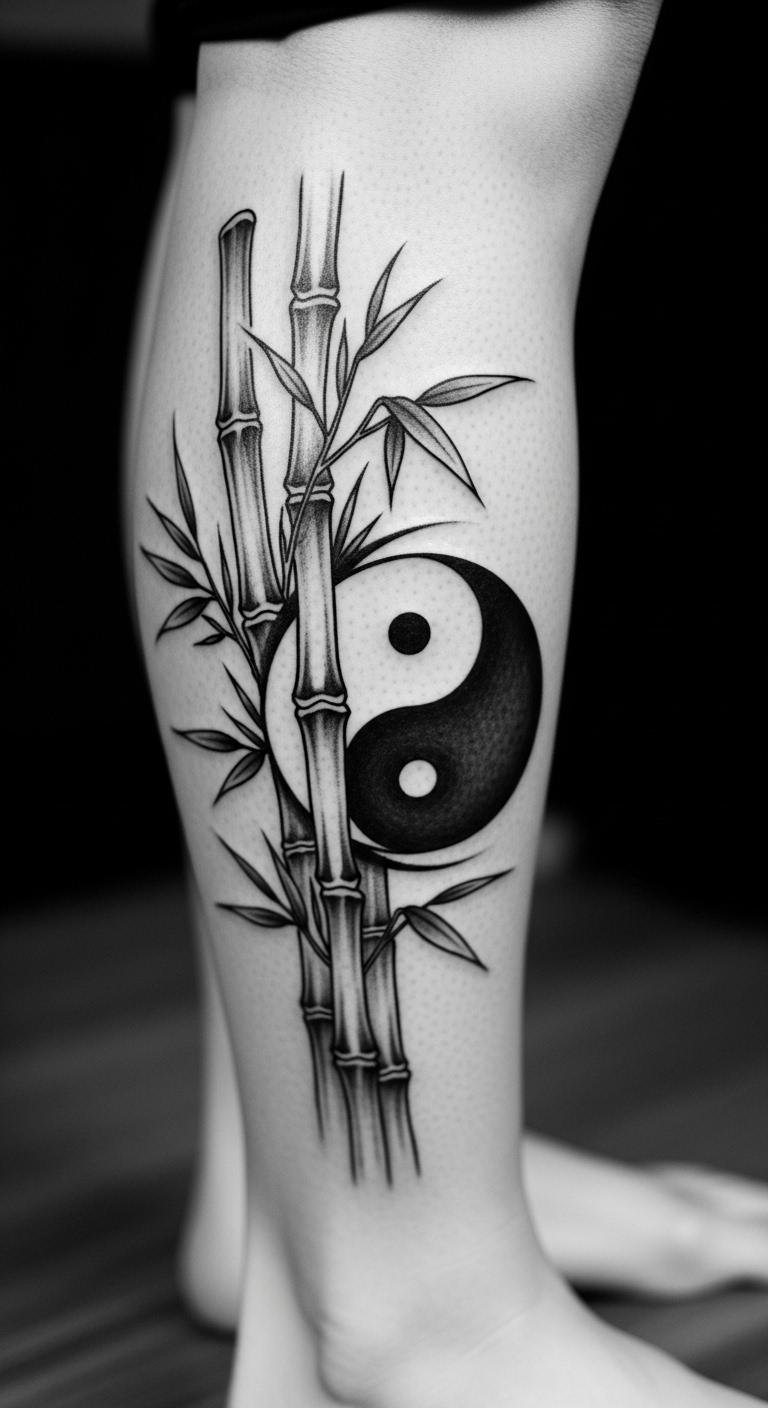 Combine bamboo with Yin Yang for balance and peace. The symbol sits next to the stalks, representing harmony. Draw it on paper at home with a circle tool and lines. Seek out affordable artists who do symbolic work. For instance, curve the bamboo around the Yin Yang for unity. This adds depth without high prices. Put it on your calf for daily inspiration. Use string and markers for a DIY mock-up. Opt for smaller sizes to keep expenses down. Test with washable ink on your skin first.