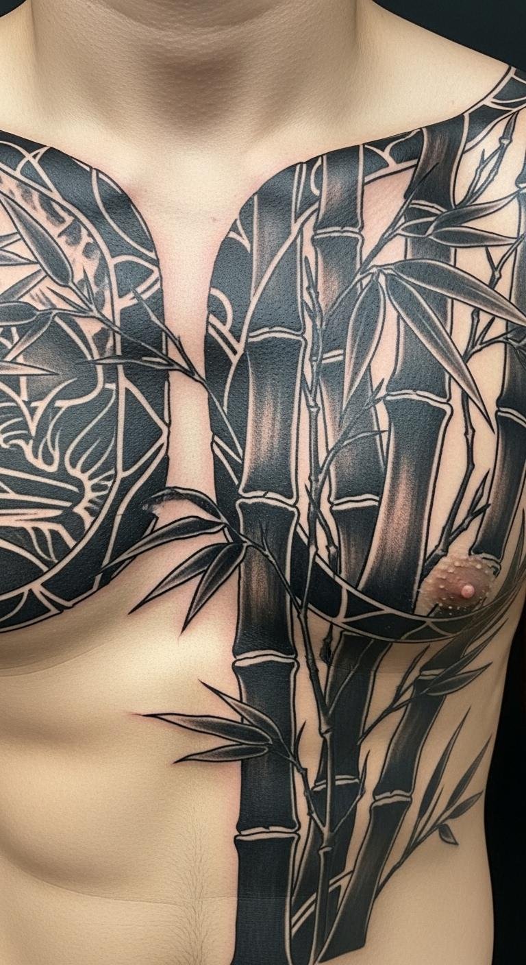 Opt for bold black ink bamboo to make a statement. It’s all about strength in simple, dark lines. Draw thick strokes at home on paper. Search for affordable blackwork specialists. For instance, extend the design with extra segments. This approach saves money while looking impressive. Put it on your chest for impact. Practice with bold markers. Choose sessions that fit your budget. Test the look with body paint.