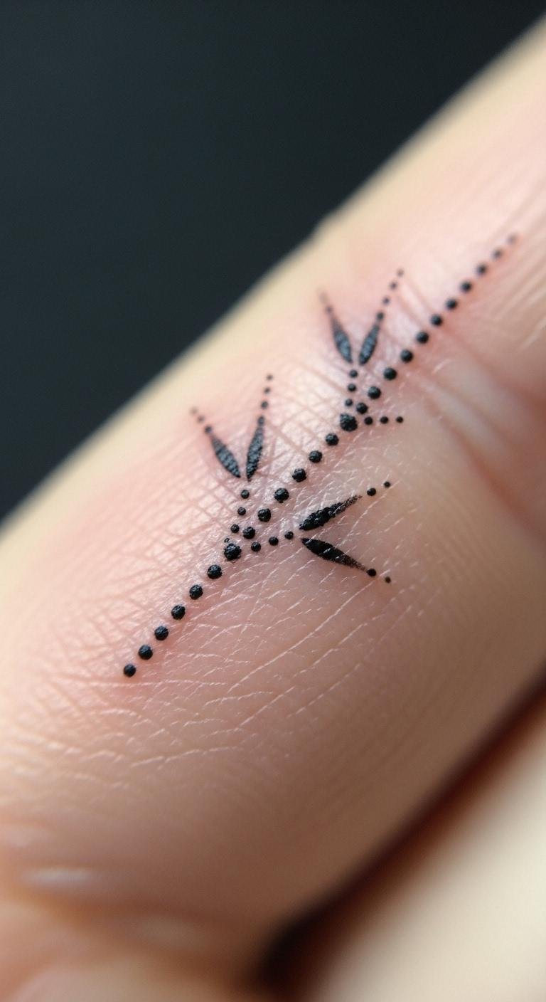 Subtle bamboo dots offer a modern, understated vibe. Tiny dots form the stalks for a unique twist. Dot paper with a pen at home. Find budget artists for dot work. For instance, vary dot sizes for texture. This keeps things affordable and creative. Position it on your finger for discreteness. Use a dotting tool from crafts. Opt for small areas to save. Preview with dot stickers.