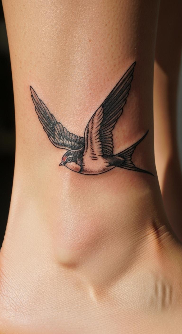 Swallow tattoos mean loyalty and safe paths. They come from old sailor tales. Choose a basic outline from free sites. Draw it yourself on paper first. Add a small compass for your story. This makes it personal and cheap. Loyal journeys add heart to your ink. Place it on your foot for easy hiding. Look for local artists offering deals on smaller pieces. Use at-home stencils to plan ahead. It helps avoid mistakes. Keep the design simple to cut costs. You’ll end up with a tattoo that reminds you of adventures without breaking the bank.
