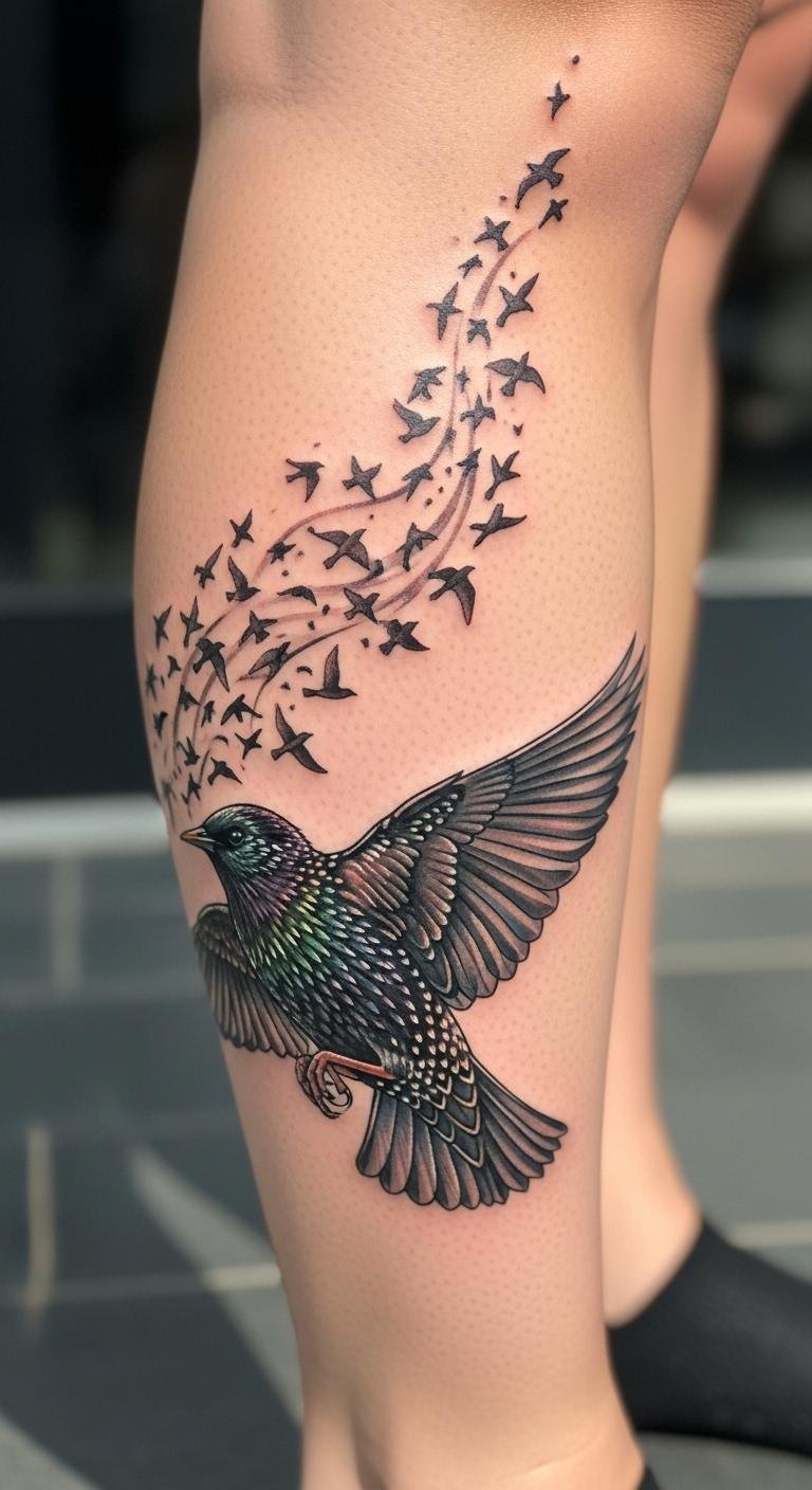 Starling tattoos mean community and bonds. They’re social. Download free designs. Jot down ideas. Include groups. Community bonds build networks. Choose your leg. Check for deals. Draw ahead. It keeps costs down.