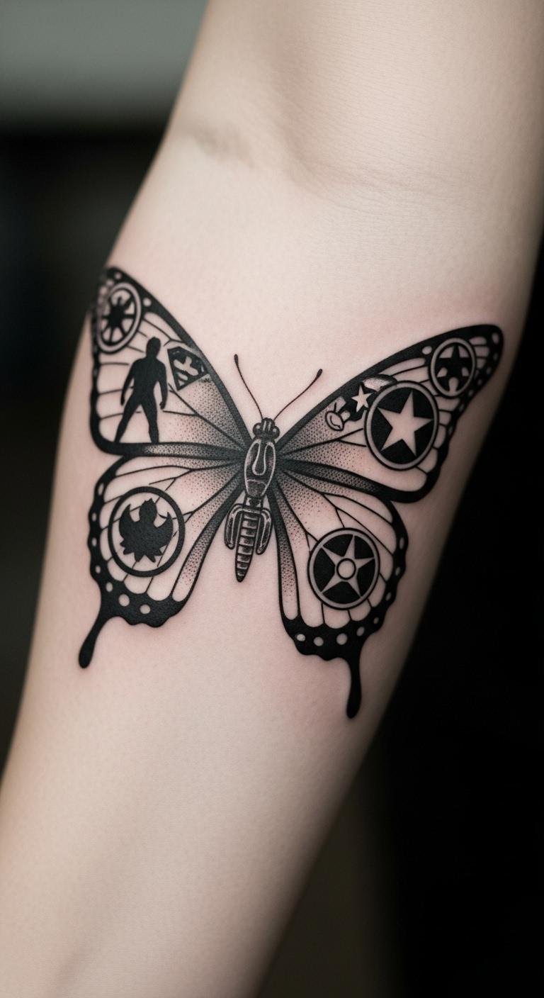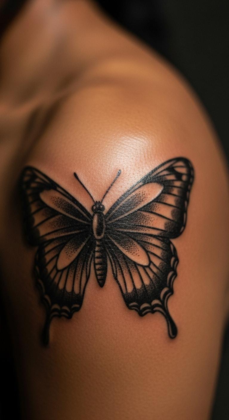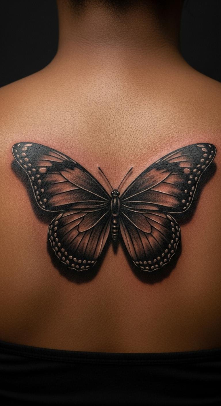 Use a black butterfly for change stories. Draw your version; paper is cheap. It captures personal shifts. Artists for symbols cost $90. Place for reflection. Journal ideas first. Black ink seals it. Plan your session. This design tells your tale.