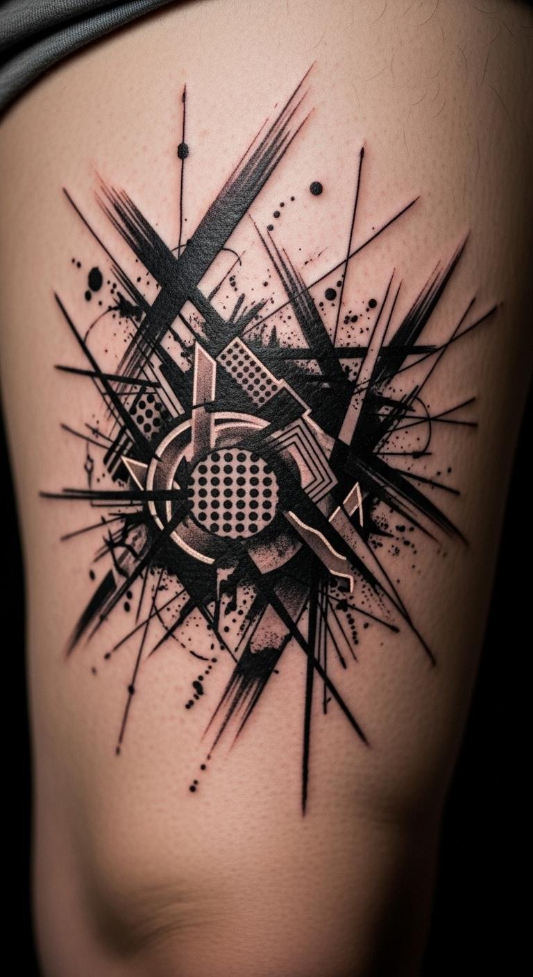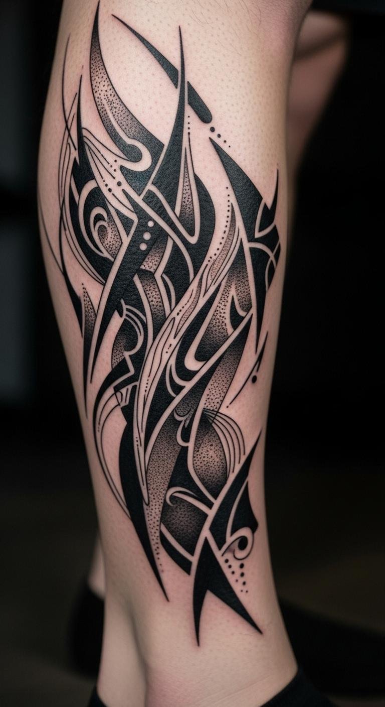 Experimental black tattoos push boundaries with abstract art. Try mixed shapes on your leg. Experiment with drawings first. Online tools create wild ideas. Artists into new styles might discount. Evolve the design over visits. Fun for creatives.