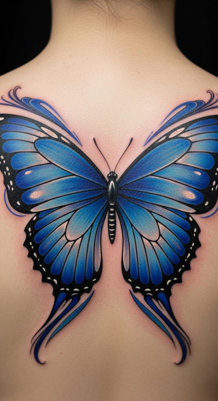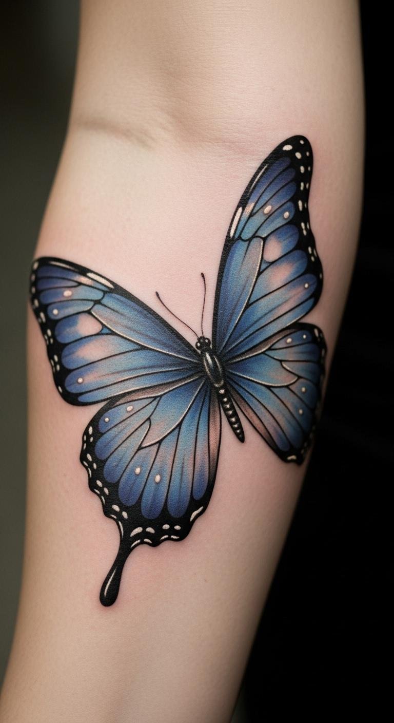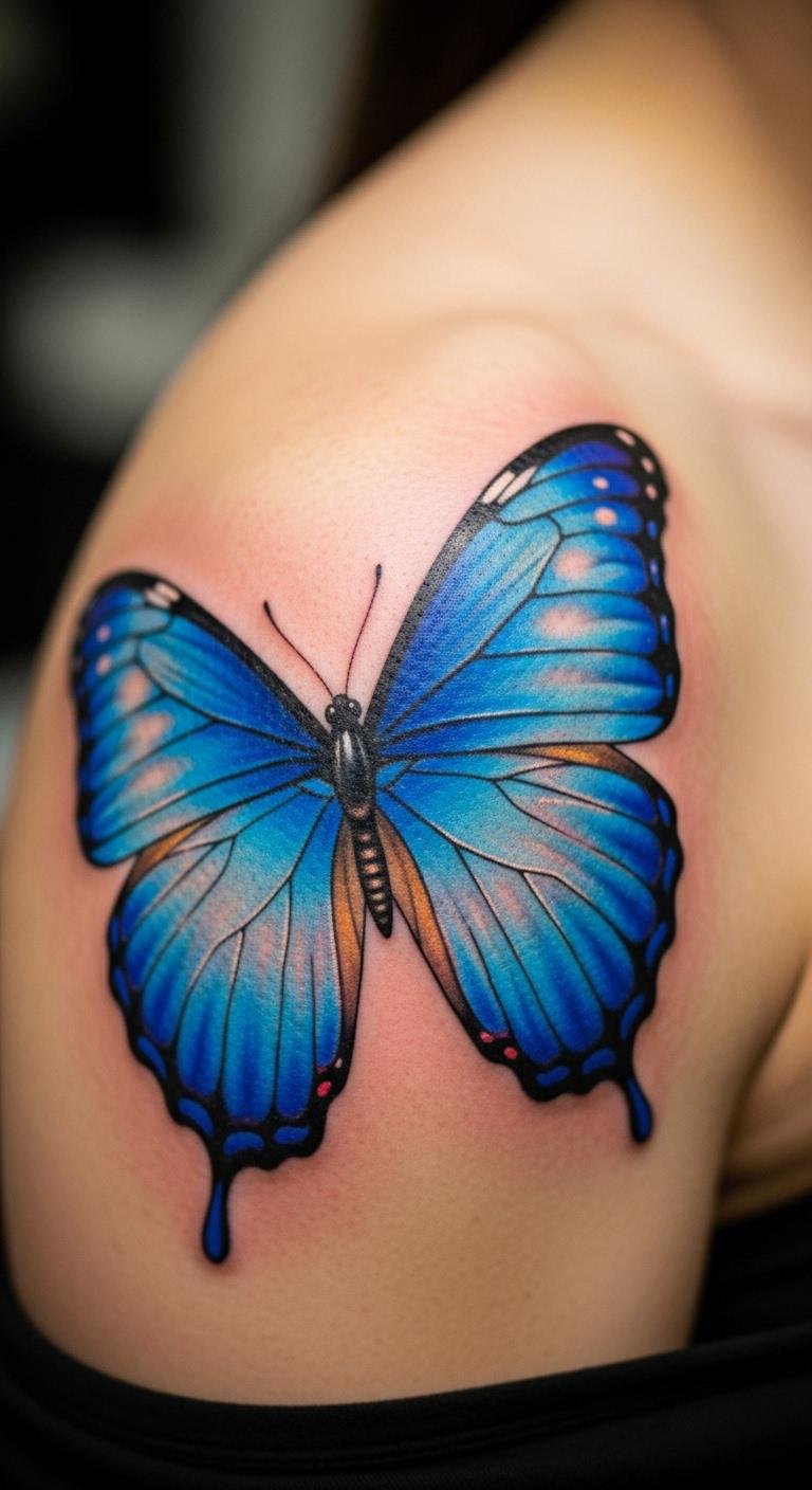 Bold Blue Butterfly Tattoo