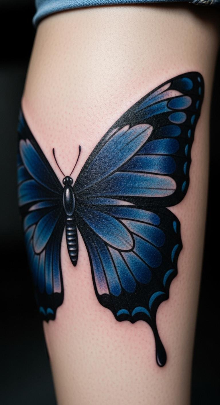Navy Blue Butterfly Tattoo