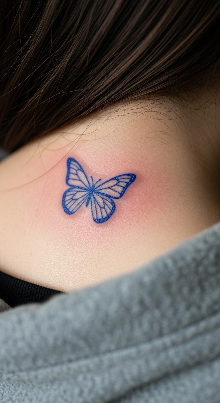 Minimalist Blue Butterfly Tattoo
