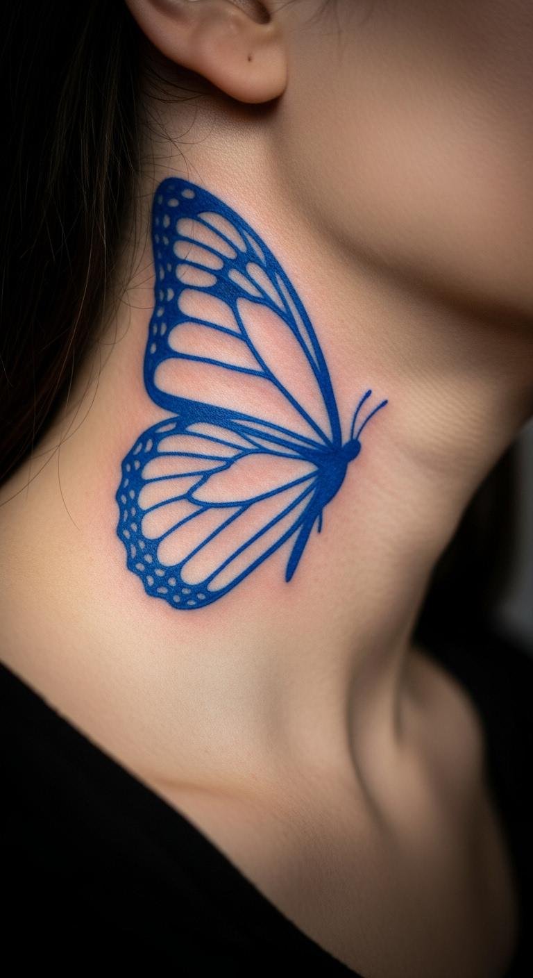 Opt for a blue outline on your neck to make a bold freedom statement. It’s eye-catching and direct. Outline ideas on mirrors with markers—cost nothing. Artists charge $50–$110. This spot demands attention. Customize lines for your vibe. Neck bands as temporaries are $2; wear and decide. Stand tall with this choice.