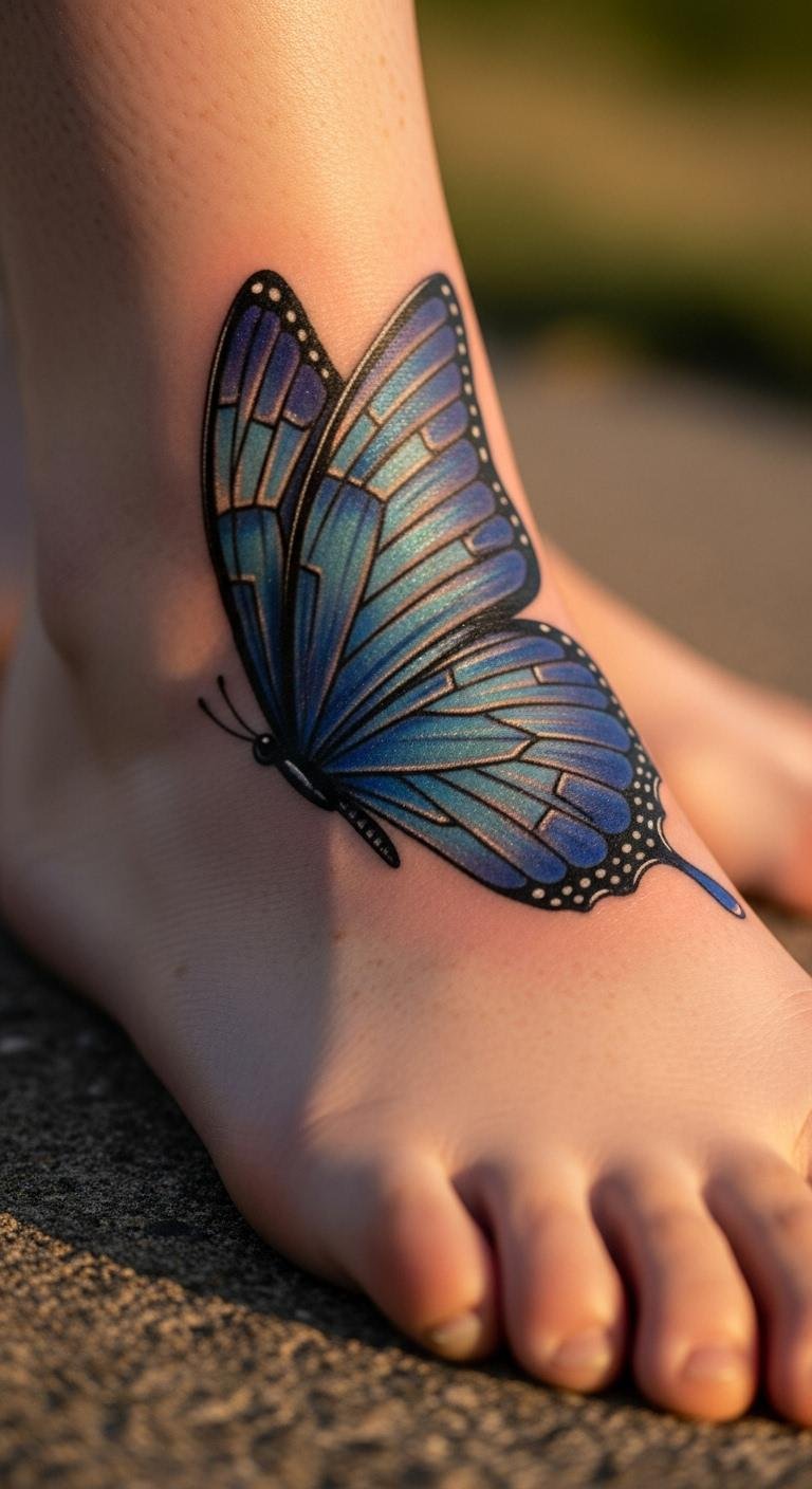 Ankle Blue Butterfly for Grounded Freedom
