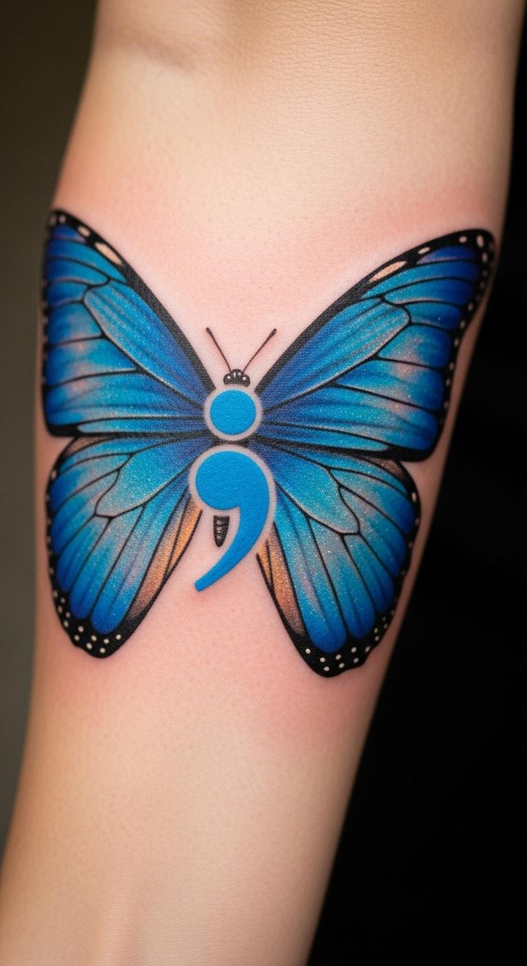 Semicolon Blue Butterfly for Hope