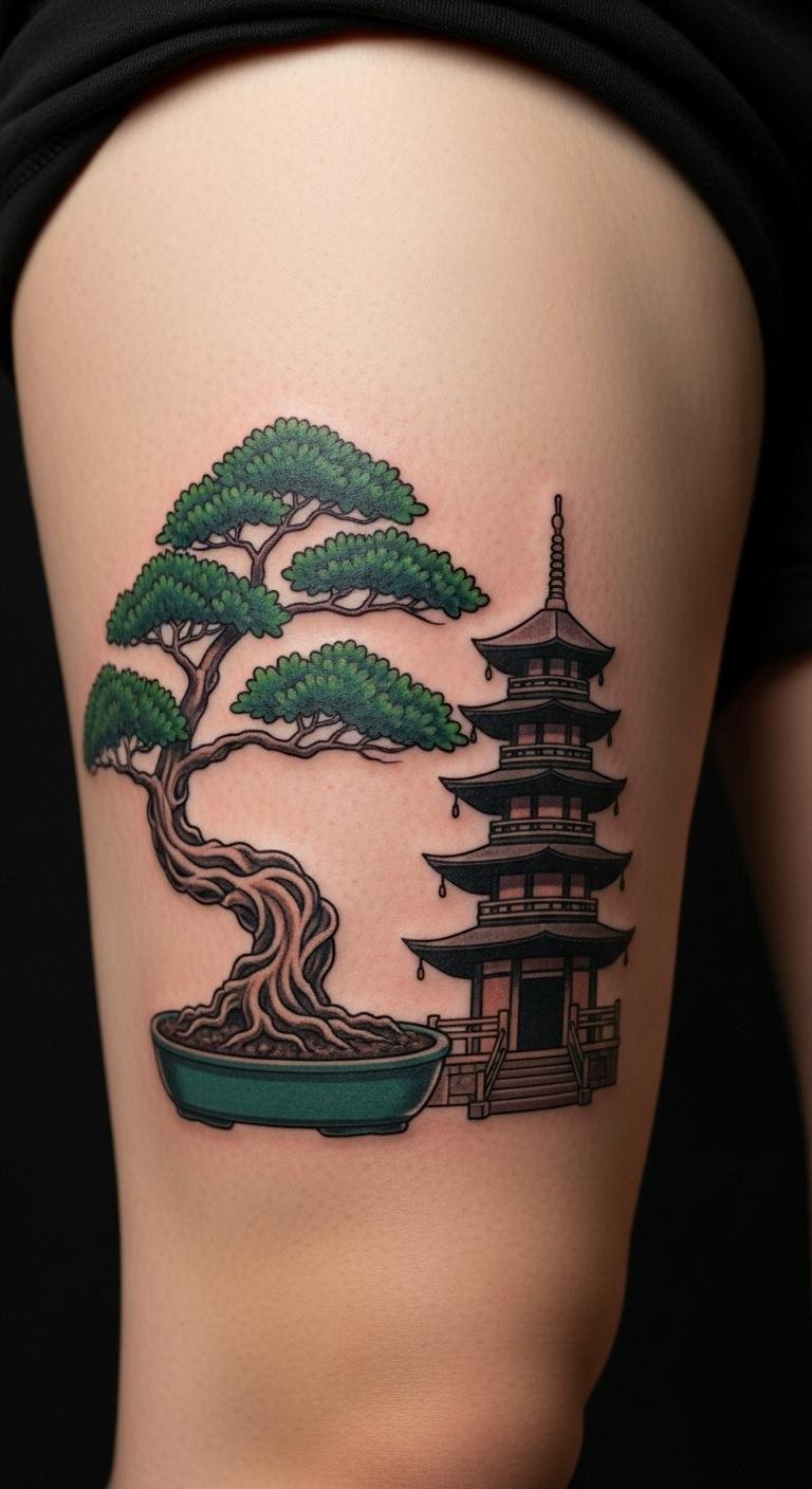 Blend bonsai with a pagoda for cultural depth. It merges nature and architecture. Draw both on grid paper. Free cultural prints assist. Look for artists who handle combos at low rates. Share references to streamline the process. Position it on your thigh for space. Use paper cutouts to map it out. This cuts prep time. Keep elements basic for savings. Your tattoo honors traditions simply. Practice with mixed sketches.