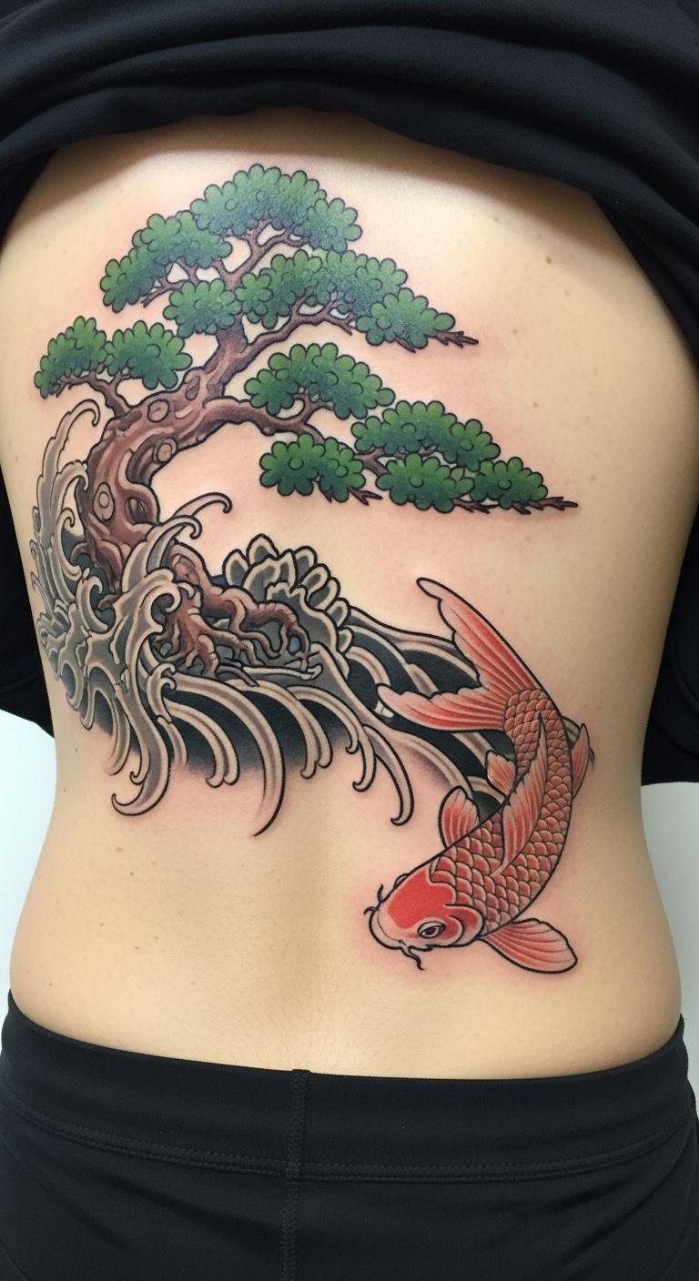 Add a koi fish to bonsai for flow and luck. Fish curves complement the tree. It tells a dynamic story. Sketch fish shapes beside trees. Free fish templates make it fast. Find budget artists for animal motifs. Pair them to share ink costs. Place on your lower back for flow. Test with water-based markers. They fade easily. Your design swims with meaning. Draw practice pieces with household items.