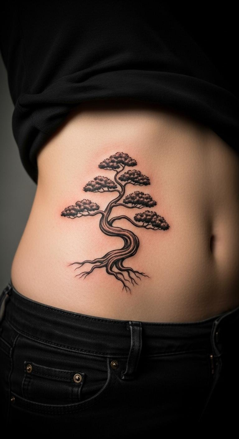 Go abstract with bonsai shapes. Swirls and blobs keep it artistic. It offers a fresh take. Doodle abstract forms on paper. Free abstract guides inspire. Choose low-cost artists for modern styles. Simplify shapes to cut expenses. Place on your hip for privacy. Use abstract stamps to test. They cost pennies. Your tattoo expresses creativity. Practice with freehand art.