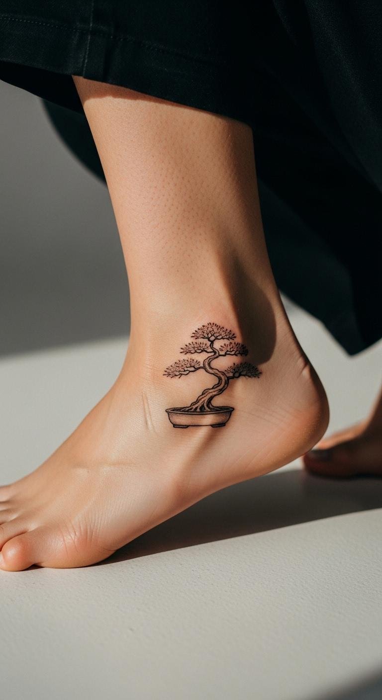 A subtle bonsai on the ankle stays discreet. Fine lines make it elegant. It fits under clothes. Etch tiny designs on cardstock. Free minimal tools help. Pick artists with small-scale options. They charge by size. Wrap it around your ankle bone. Test with thin tape outlines. It’s a quick, cheap check. Your tattoo whispers calm. Sketch with fine pens.