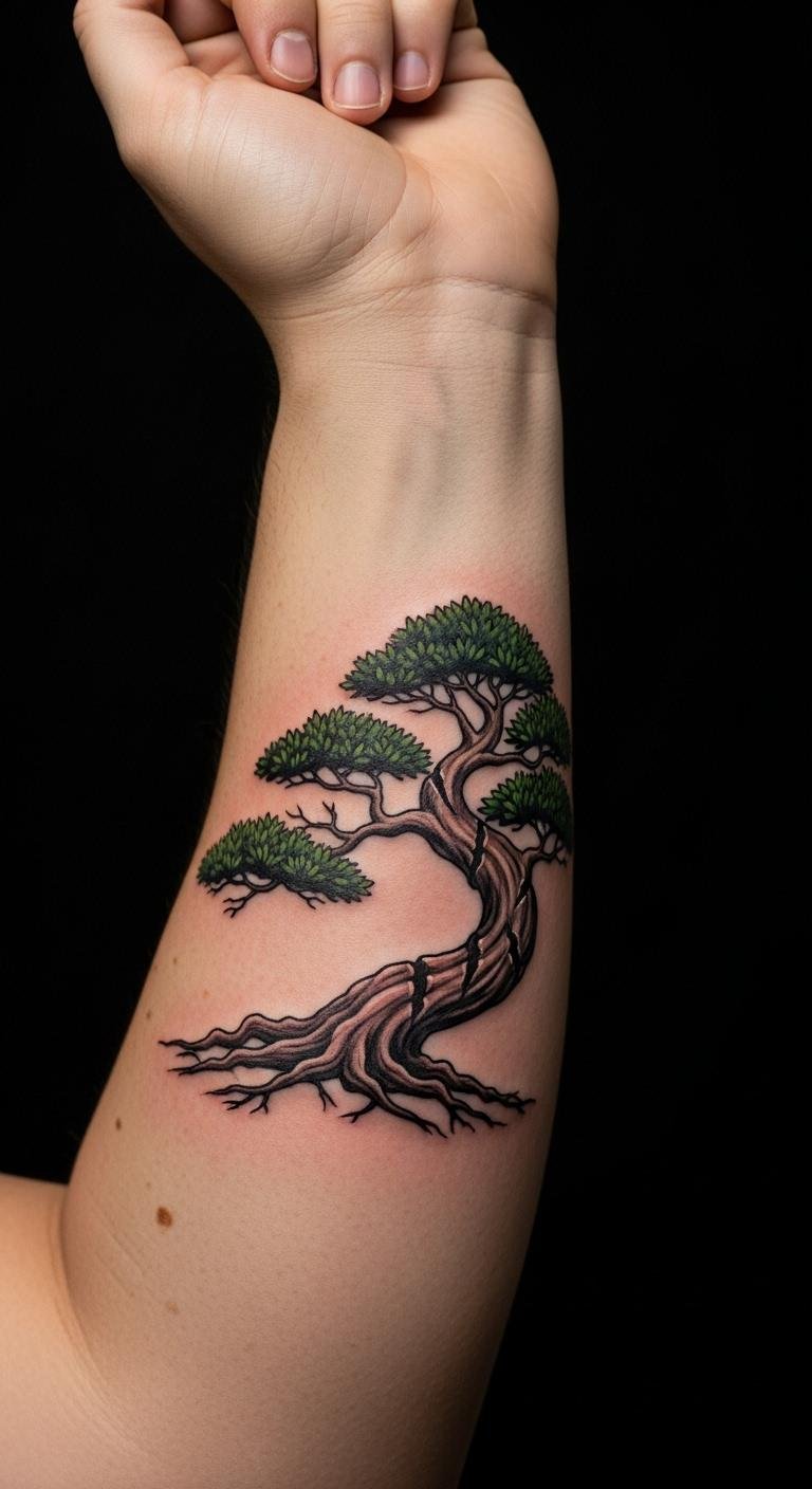Twisted trunks on a small forearm bonsai add character. It shows life’s ups and downs. Keep it compact for everyday wear. Sketch twists freehand on notebook paper. Online tutorials make it straightforward. Choose a nearby artist with fair rates. Ask about package deals for small pieces. Place it where you can see it daily. Use adhesive tattoos to try different spots. This keeps things low-risk. Stick to basic ink for affordability. Your design inspires quiet strength. Experiment with string art at home as a fun prep.