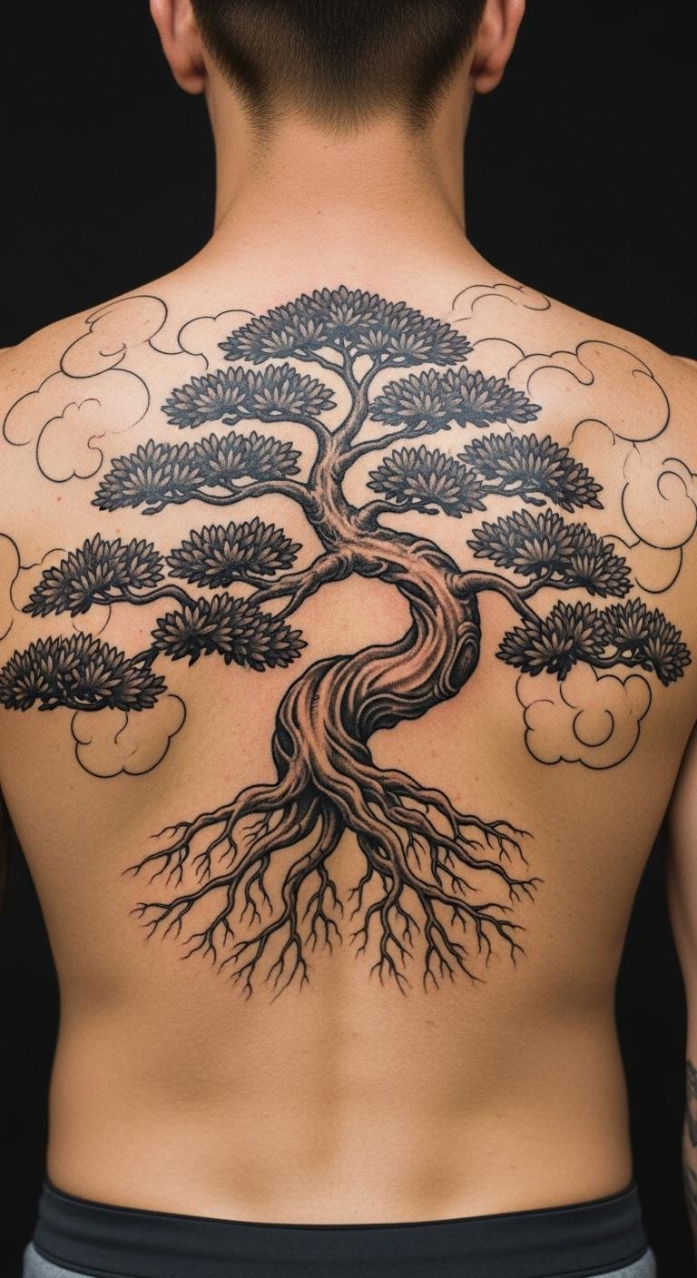 A big bonsai on your back with roots tells a full story. Roots ground the design in meaning. It speaks to deep connections. Draw rough versions on large paper sheets. Free printables help guide you. Look for affordable studios in your area. They might bundle sessions for less. Position it centrally for balance. Try body paint from craft stores to mock it up. This lets you adjust before ink. Opt for simpler roots to cut expenses. Your tattoo becomes a symbol of stability. Practice with free drawing apps on your phone.