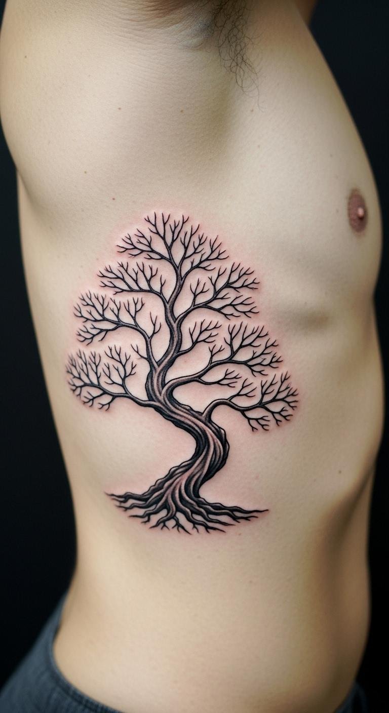 Bare branches give a winter bonsai feel. It symbolizes endurance through cold. Keep lines stark and strong. Draw bare trees on scrap paper. Online resources provide quick ideas. Opt for local pros with entry-level prices. Place it on your ribs for a hidden touch. Use wash-off paints to test the area. This makes planning simple. Focus on outlines to save money. Your tattoo stands for quiet power. Practice with branch rubbings from nature.