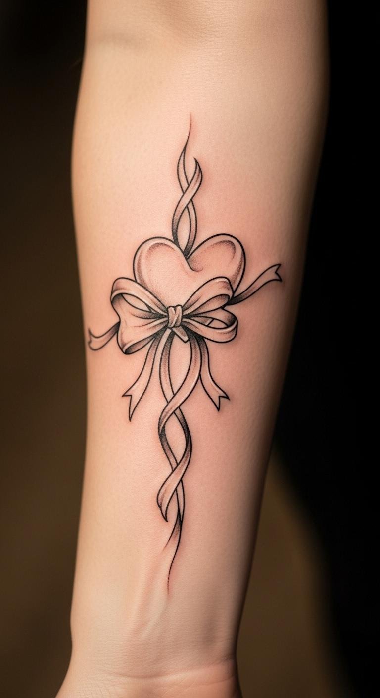 Link a bow with a heart for a loving twist. It highlights grace in relationships. Keep the lines simple for a clean feel. Sketch both shapes on paper to see how they fit. This step costs nothing and saves time. Look for deals at nearby studios; small combos might run $70. Put it on your forearm for frequent glances. Add a date or initial for your own meaning. Free online tools let you edit designs quickly. This makes the process accessible and meaningful.