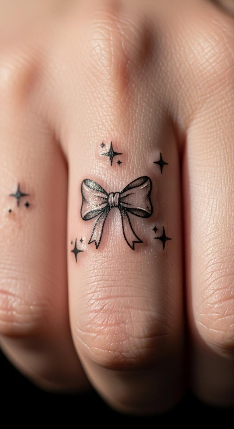Stars around a bow make it sparkle with strength. This idea shows you’re a bright force. Use tiny stars for a subtle effect. Draw it out with a marker at home. It helps visualize the shine. Affordable artists often charge $50 for finger tattoos. Place it where you can see it daily. Combine with birthstone colors for extra flair. Apps make it easy to add stars digitally first. Keep it simple to stay under budget.