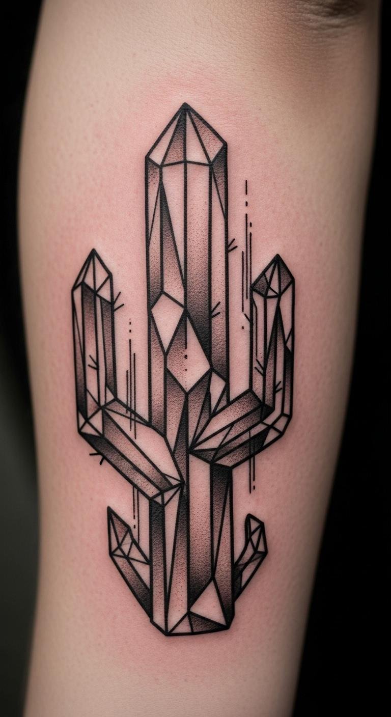 Forearm geometric cacti mix math and nature on your arm. Shapes create interest. Cost about $150. Draw grids at home. Align lines carefully. Forearm heals well. Patterns don’t fade easy. Make it abstract. Use cheap salves. One session fits. It’s modern and bold.