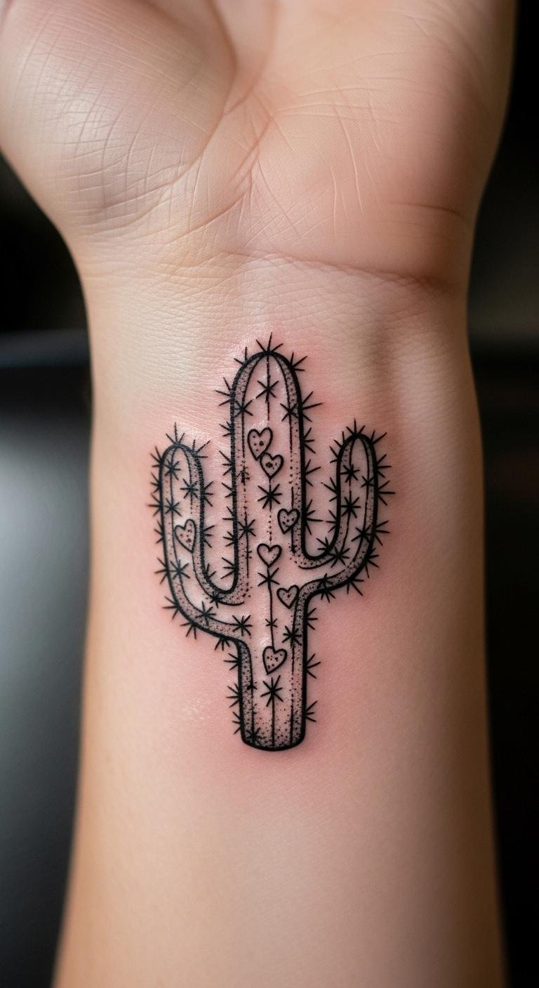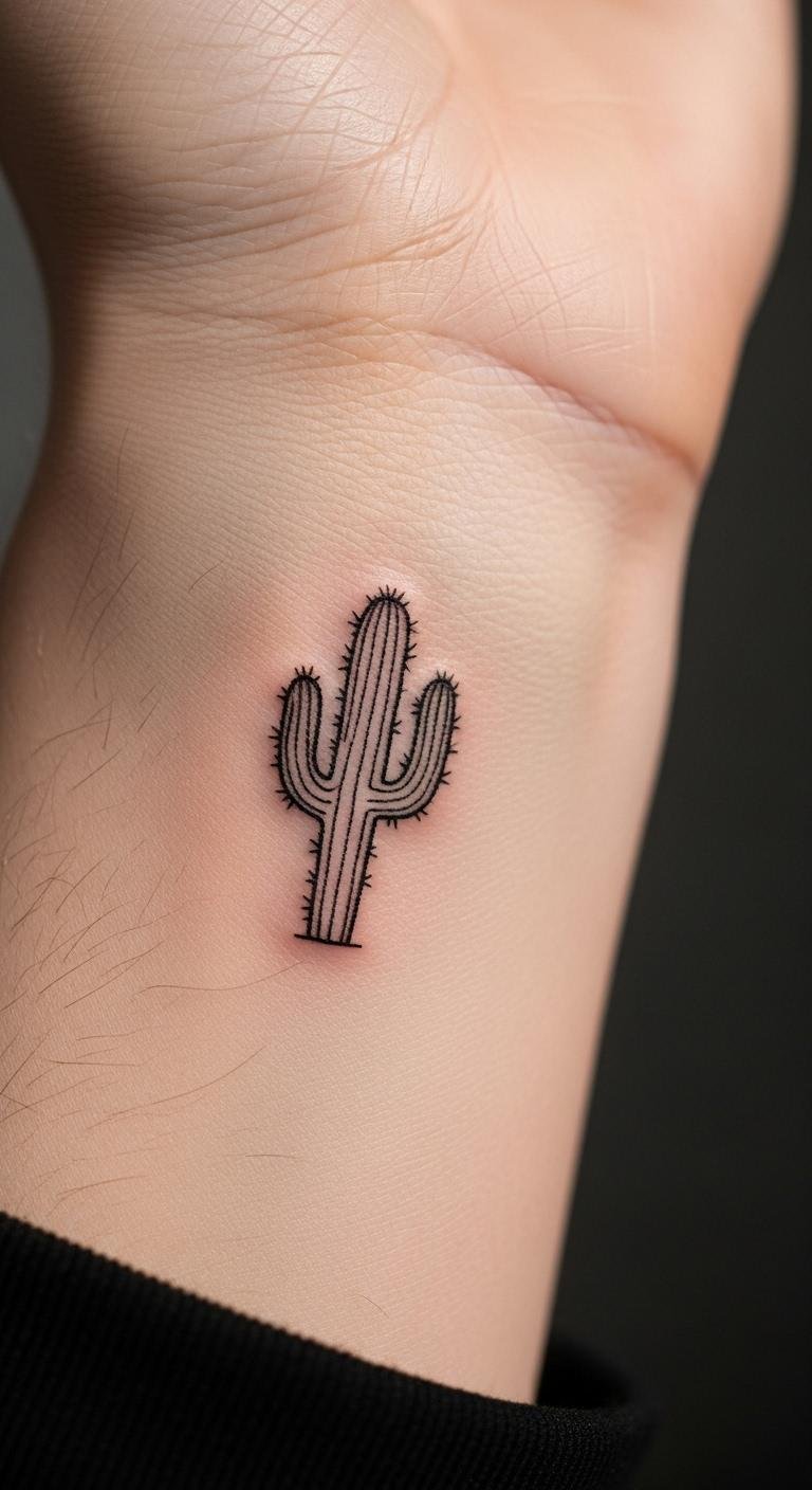 Small wrist cacti offer a discreet way to wear your story, fitting neatly on that spot. It’s subtle yet meaningful. Expect to pay less than $100. Sketch a tiny version on paper with a fine pen. Keep lines straight and simple. This spot hurts less than others. Black ink works best for longevity. Add a small spine for personalization. Moisturize with everyday cream. Get it in a short appointment. It hides under sleeves for work. Test with a temporary stamp first.