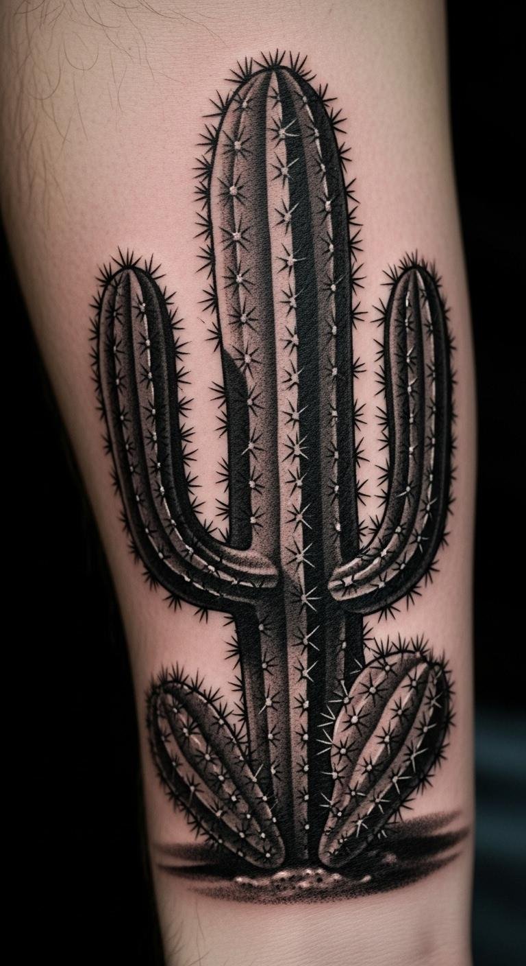 Black and grey cacti offer a classic look on your forearm, with shades for depth. No colors mean less fading. Pay about $120. Shade in grey with pencils at home. Build layers slowly. Forearm is a good spot. Ink lasts with basic care. Add shadows for depth. Moisturize regularly. One visit works. It’s timeless and easy.