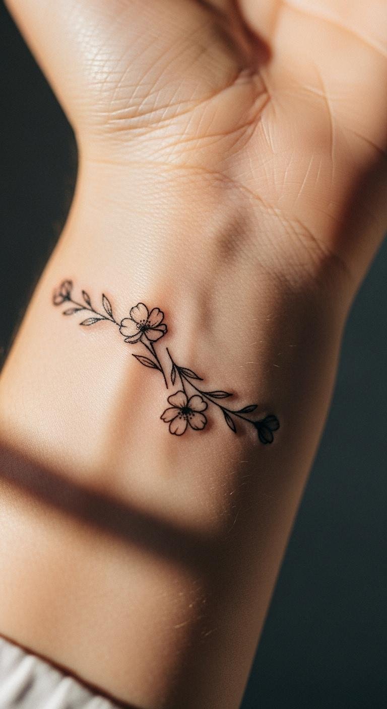 Flowers on your wrist add a touch of nature and charm. Imagine a few petals wrapping around like a bracelet. It brings out your soft side without much fuss. Draw a quick version on your skin with a marker to see how it flows. This takes minutes and zero cost. Go for small blooms that fit your style—think daisies for fun. Temporary stickers from drugstores cost less than $5 and let you try first. Place it where you can glance at it daily, like your wrist, for a quick boost. Keep designs clean and straightforward. When ready, find an artist through apps—many charge by the hour starting at $60. This approach makes tattoos feel accessible and personal.