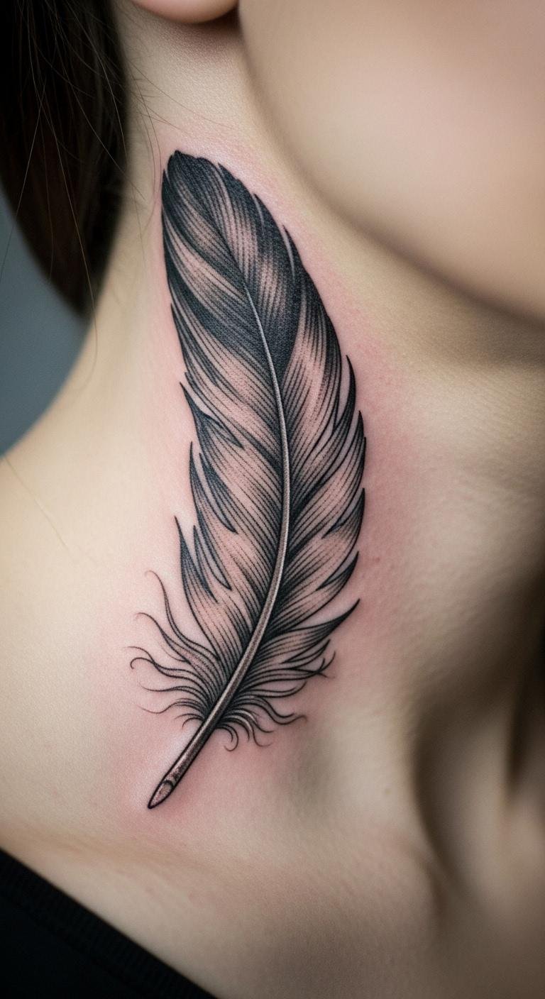 Feathers represent lightness and freedom. Try one on your neck for a whisper of air. Draw feathers on paper to experiment. Cost-free creativity. Choose tips that flow naturally. Free editing helps. Stickers cost under $2. Place near your neck for subtlety. Bold the touch: fine details for elegance. Artists charge from $50. It’s a practical choice for expression.