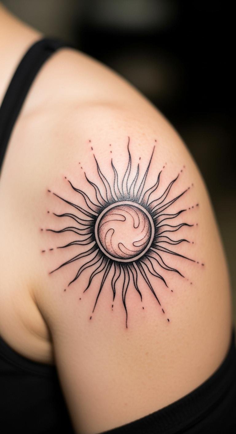 Sun tattoos mean energy and warmth. Put one on your shoulder for a sunny vibe. Draw suns in your book to plan. No cost needed. Pick rays that shine bright. Free tools assist. Temporaries are cheap. Place on shoulders for visibility. Bold the burst: radiating lines for energy. Artists offer from $60. It’s a bright way to start.