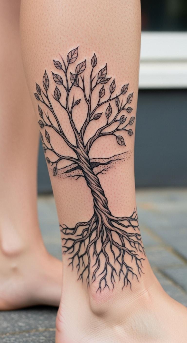 Trees symbolize growth and roots. Try one on your leg for deep connections. Draw trees in sketches first. Effortless and free. Select branches that branch out. Free software aids. Tests are under $5. Place on legs for stability. Bold the root: branching lines for depth. Artists charge from $70. It’s a grounded approach to ink.
