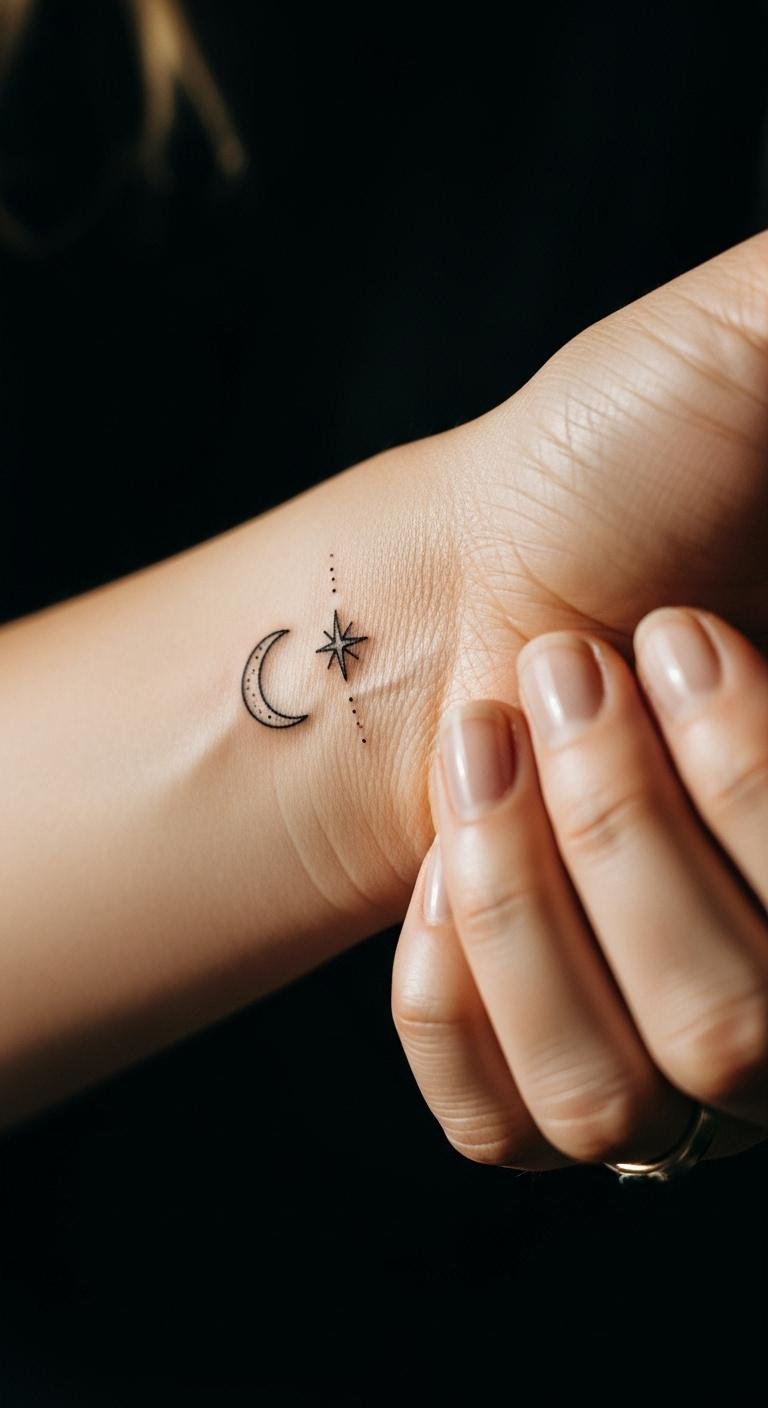Stars and moons symbolize dreams and cycles. Imagine them on your hand for a cosmic nod. Doodle stars in your notes to brainstorm. Quick and cost-free. Go for paired designs that tell a story. Digital previews via apps are free. Temporary options cost pennies. Choose a spot like your hand for visibility. Bold the feature: clean lines enhance clarity. Artists charge from $50—schedule easily. This makes tattoos feel magical and real.