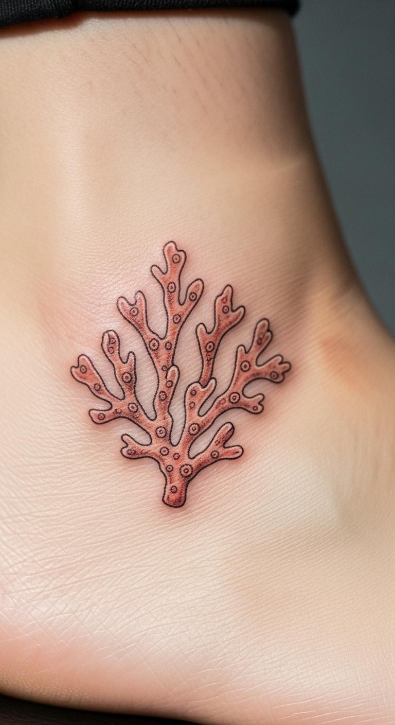 Ankle coral is discreet and cute. Keep it tiny. Perfect for daily life. Shops do these for $70. Practice on paper. Bold this: go small on ankle. Heals fast.