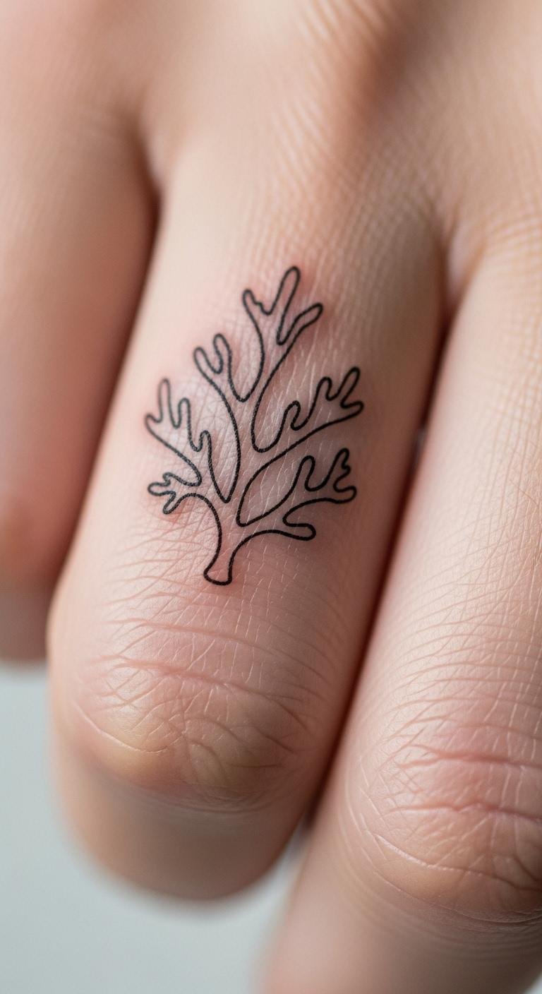 Discreet Finger Coral Tattoo