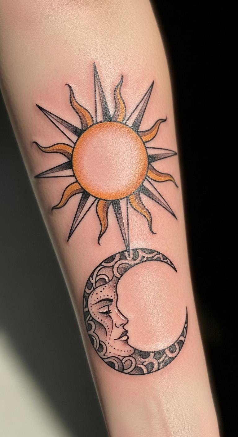 Combine a crescent moon with a sun for a symbol of balance in your life. This tattoo pairs opposites, making it ideal for meaningful ink. Sketch both shapes on paper first; use free apps for quick layouts at no cost. Local shops often offer this for around $200, depending on detail. Place it on your forearm for easy viewing. Sun and moon duo represents harmony, so add a small ray or curve for personalization. Try a DIY version with temporary tattoos to test the feel. Opt for black and gray ink on fair skin for strong contrast. Sessions take about an hour, so prepare with over-the-counter pain relief. Basic aftercare, like covering with a bandage, keeps it simple. This design fits various styles, from casual to formal, and won’t strain your budget.